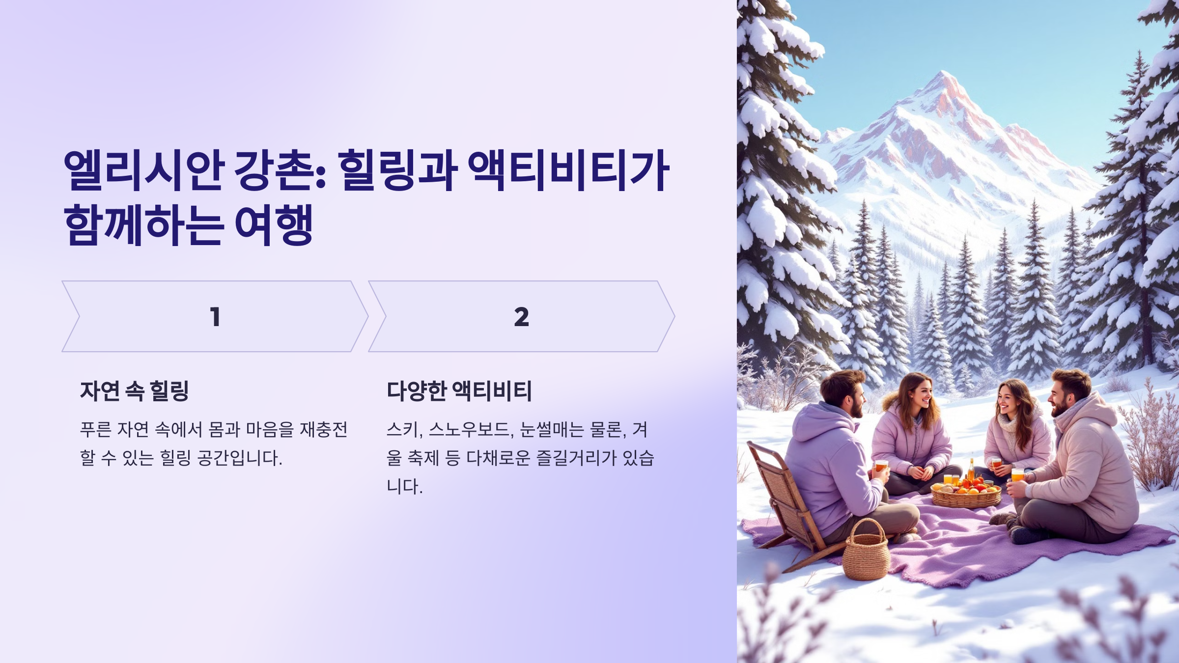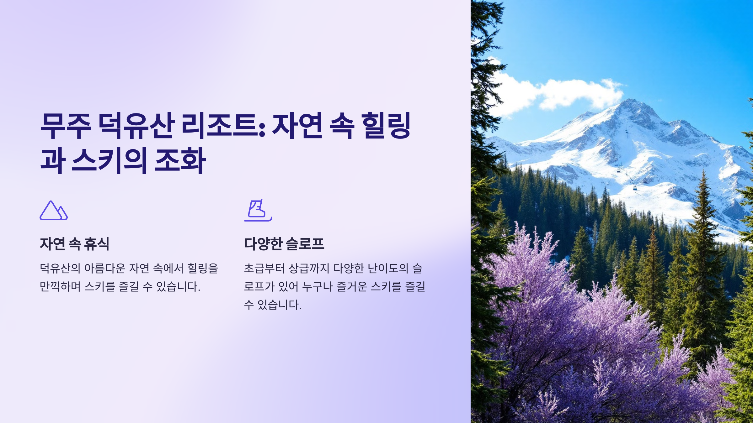 자연 경관 속에서 스키를 즐길 수 있는 특별한 경험을 선사해요.