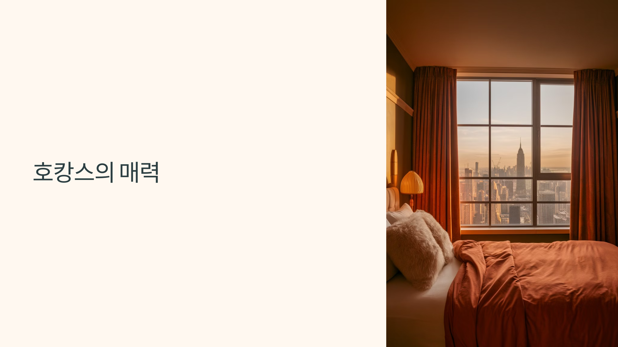호캉스(호텔+바캉스)는 짧은 시간 동안 도심이나 근교에서 여유롭게 휴식을 취할 수 있는 현대적인 여행 형태예요. 특히 겨울철에는 외부 활동을 줄이고, 따뜻한 실내에서 여유를 즐기고 싶은 사람들에게 최고의 선택이 될 수 있어요. 호캉스의 매력을 아래에서 알아볼까요?