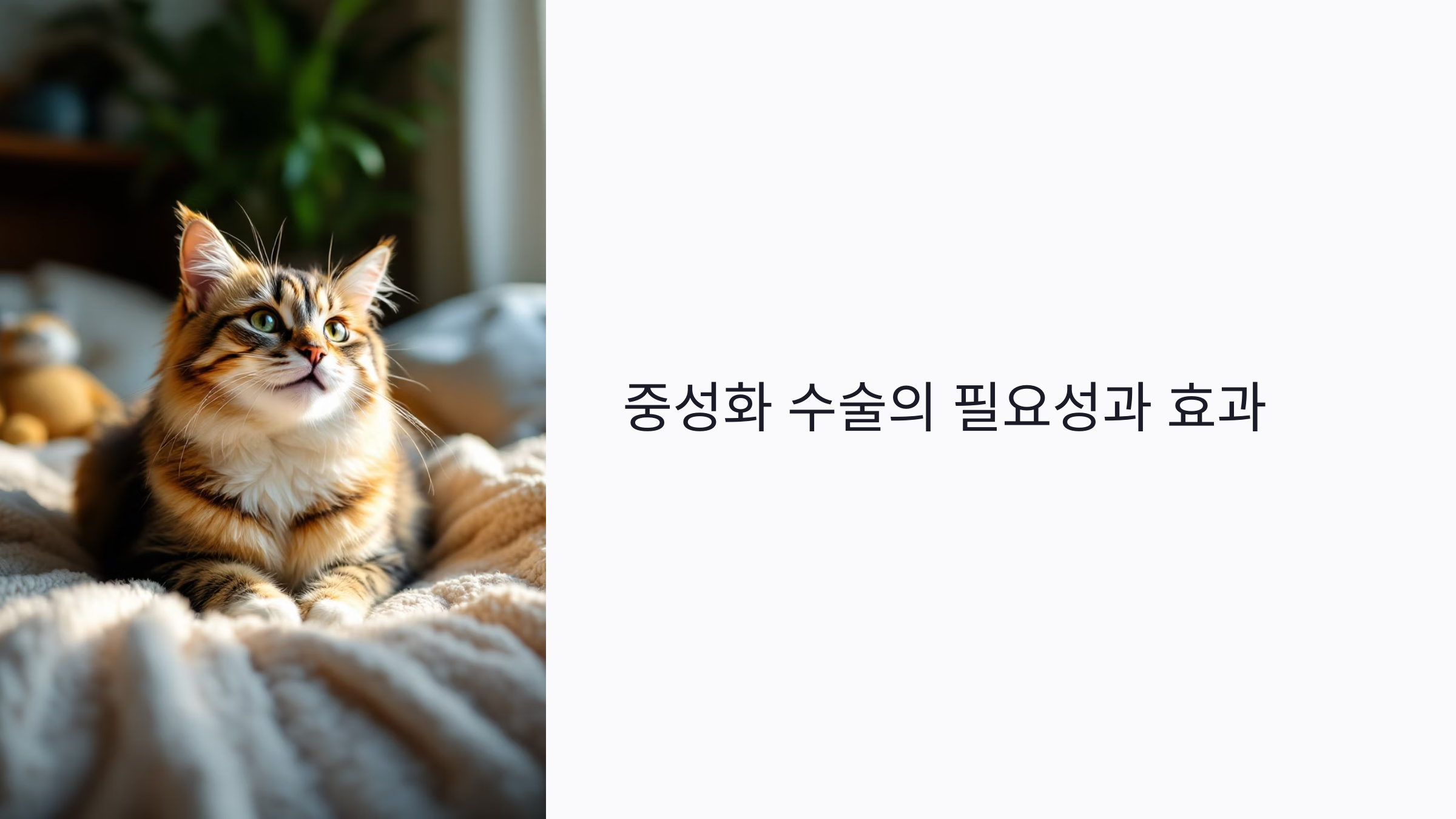 고양이 중성화 수술은 단순히 번식을 막는 수단이 아니에요. 행동 안정, 질병 예방, 스트레스 완화 등 여러 방면에서 고양이의 삶을 더 편안하고 건강하게 만들어주는 매우 효과적인 조치랍니다. 특히 보호자 입장에서도 함께 사는 데 있어서 다양한 장점이 있어요.