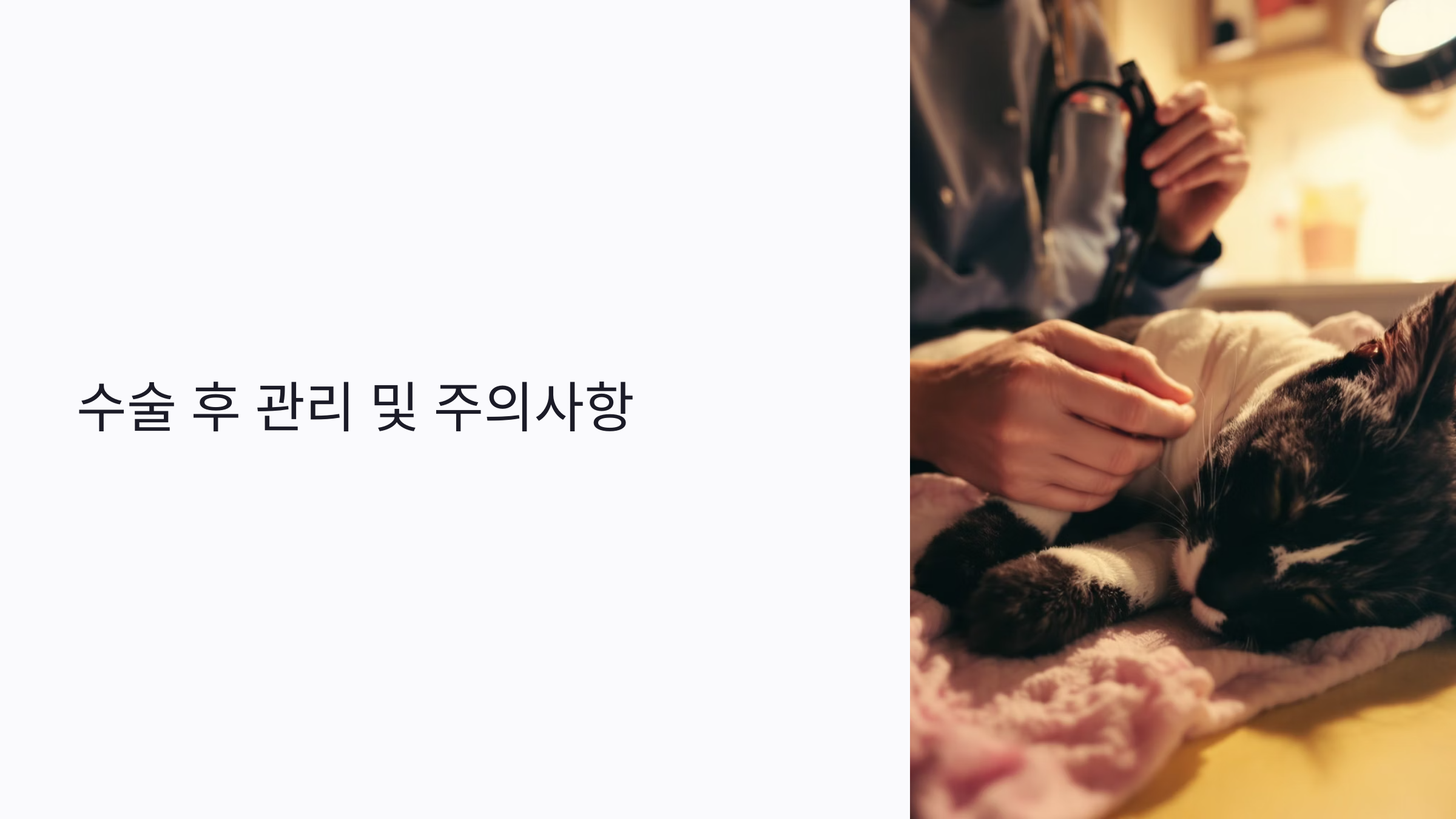 중성화 수술은 끝났다고 바로 끝나는 게 아니에요. 회복이 잘 이루어져야 수술의 효과도 크고, 고양이도 빨리 일상으로 돌아올 수 있어요. 보호자가 꼭 알아야 할 수술 후 관리 포인트들을 알려드릴게요. 🛏️