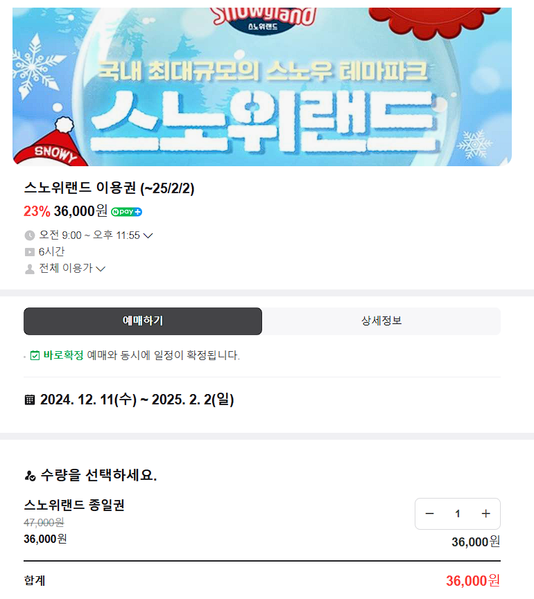 스노위랜드는 다양한 할인 혜택을 제공하고 있습니다. 온라인 사전 예약을 통해 최대 42%까지 할인된 가격으로 입장권을 구매하실 수 있습니다.