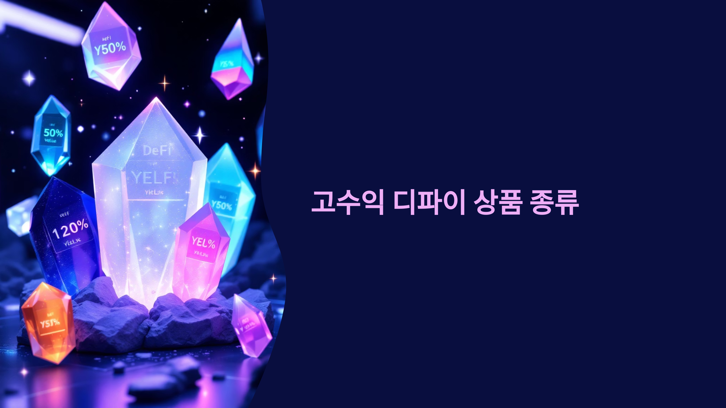 디파이에서는 전통 금융에선 상상도 못 할 수익률을 제공하는 상품들이 많아요. 하지만 그만큼 리스크도 크기 때문에, 상품의 구조와 특징을 정확히 알고 접근해야 해요. 여기서는 대표적인 고수익 디파이 상품들을 종류별로 소개해드릴게요.