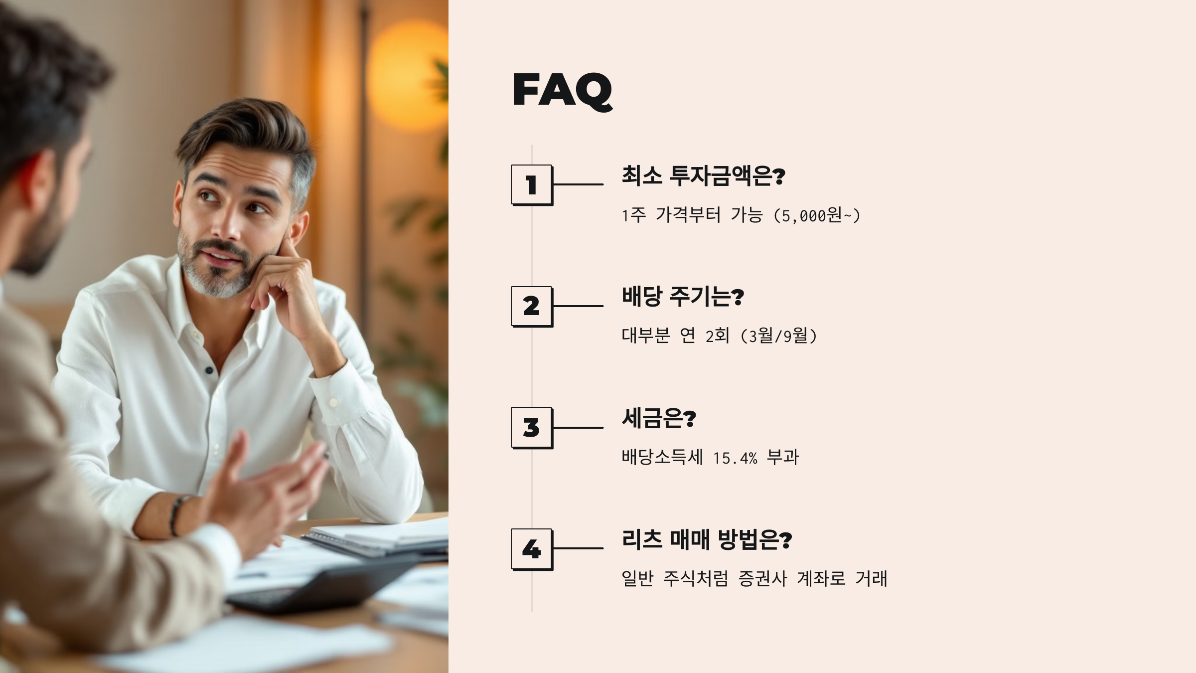 마지막으로 리츠 관련 자주 묻는 질문들을 FAQ로 정리해볼게요! 🙋♂️