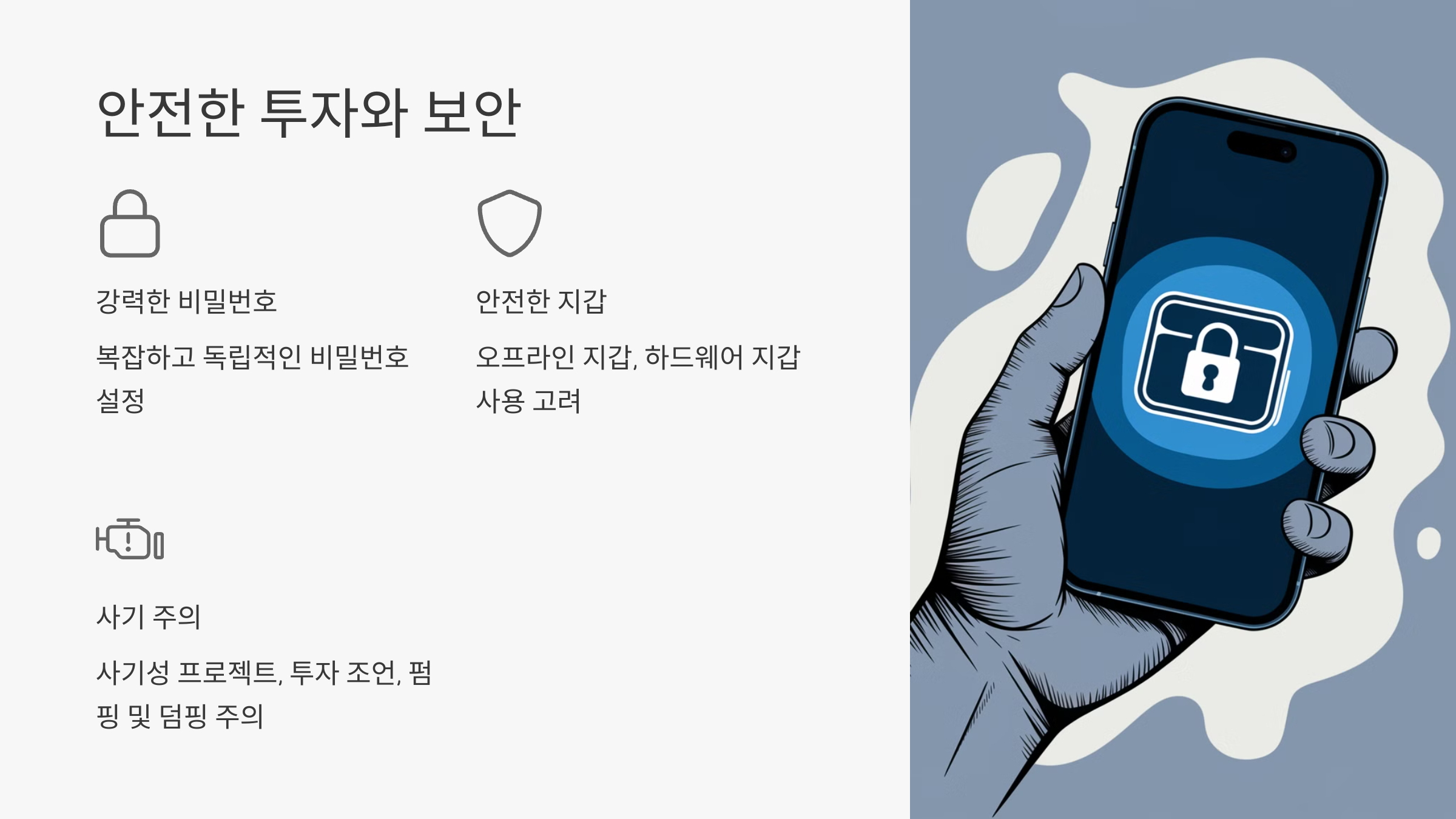 가상화폐 투자를 안전하게 하기 위해서는 보안에 각별히 신경 써야 해요. 다음은 보안을 강화하는 몇 가지 팁이에요: