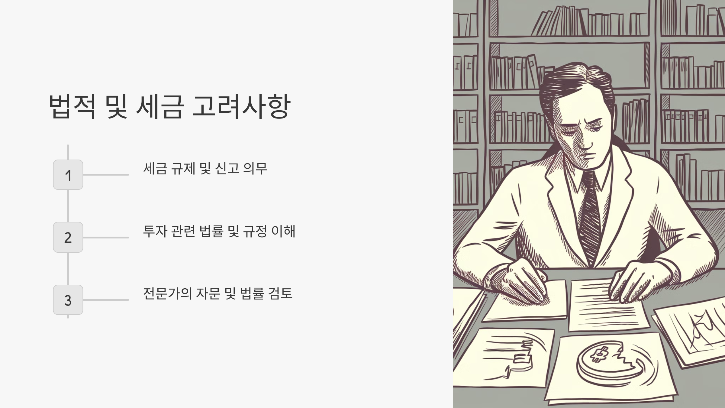 이처럼 법적 및 세금 문제는 가상화폐 투자에 있어 매우 중요한 부분이에요. 이를 간과하면 법적 분쟁이나 금전적 손실이 발생할 수 있으니, 투자 전에 충분히 공부하고 전문가의 도움을 받는 것이 좋아요.