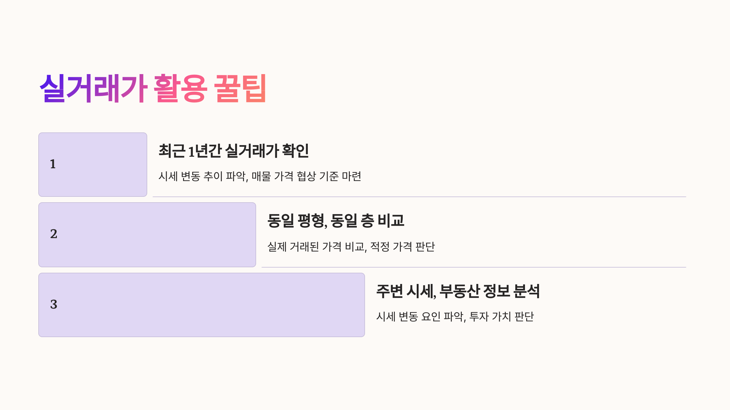 위에서 소개한 꿀팁들을 활용하면, 실거래가 데이터를 단순히 "시세 확인 도구"가 아닌, 전략적인 의사결정의 기반으로 삼을 수 있어요. 데이터를 잘 활용해 안정적이고 성공적인 부동산 거래를 이루길 바랄게요!