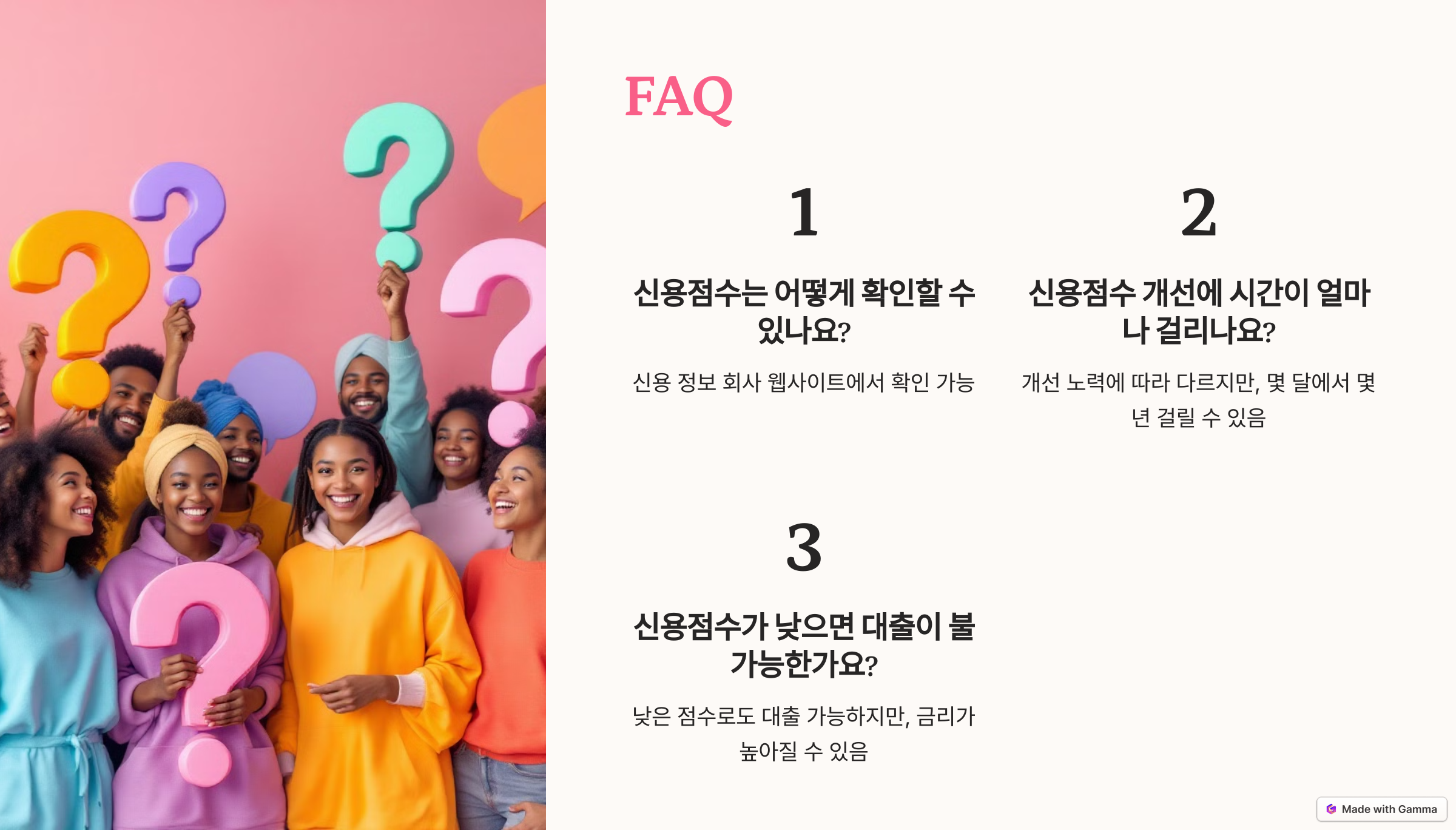 A3. 신용점수는 시간이 필요한 항목이에요. 하지만 신용카드 결제 연체를 방지하고 이용률을 낮추면 점진적인 개선이 가능해요.