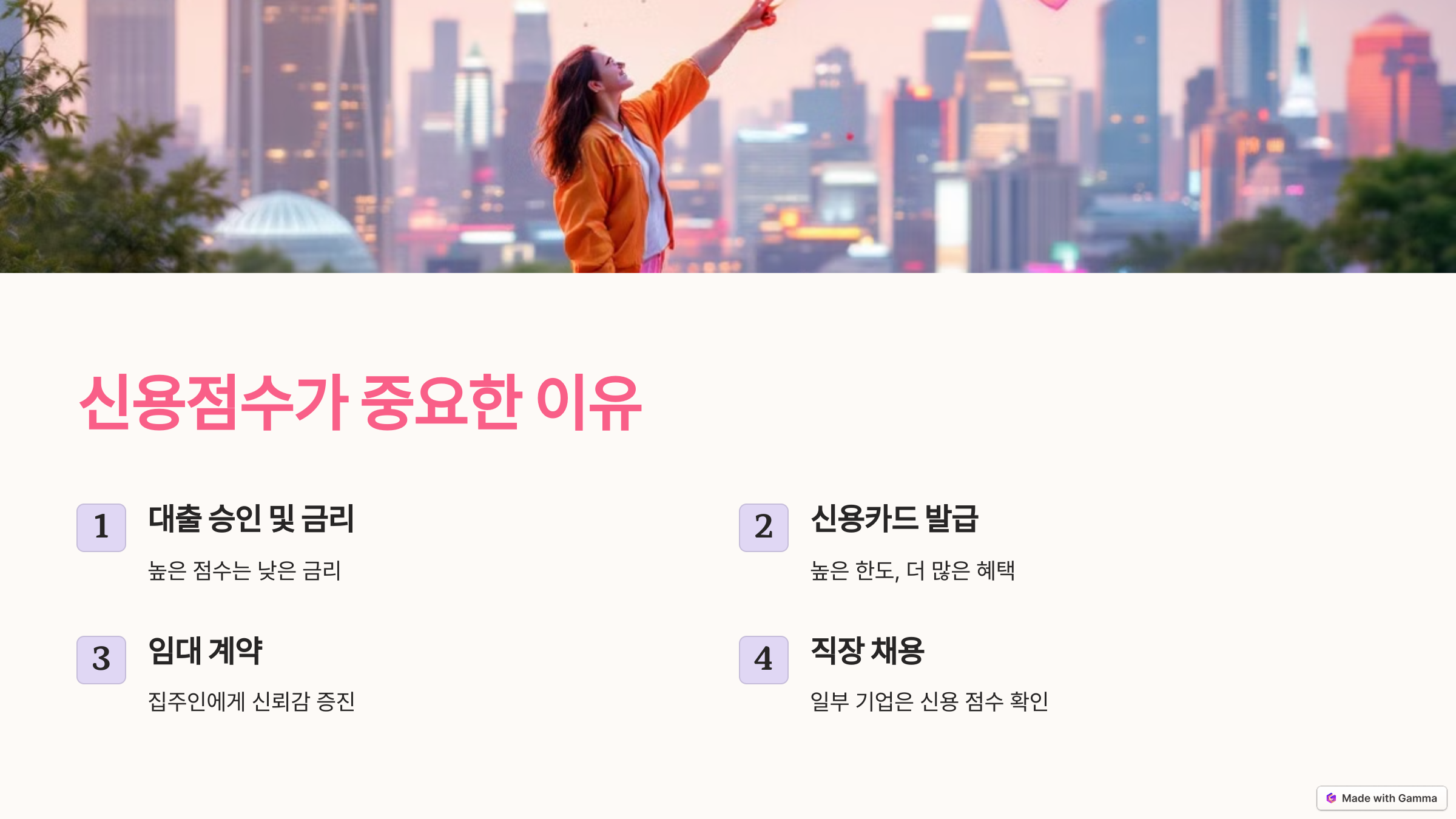 이처럼 신용점수는 단순한 숫자가 아니라, 개인의 경제 신뢰도를 나타내는 중요한 지표라고 할 수 있어요. 따라서 점수를 관리하는 일은 단순히 금융기관과의 거래를 넘어, 삶의 다양한 측면에 영향을 미치게 되죠.