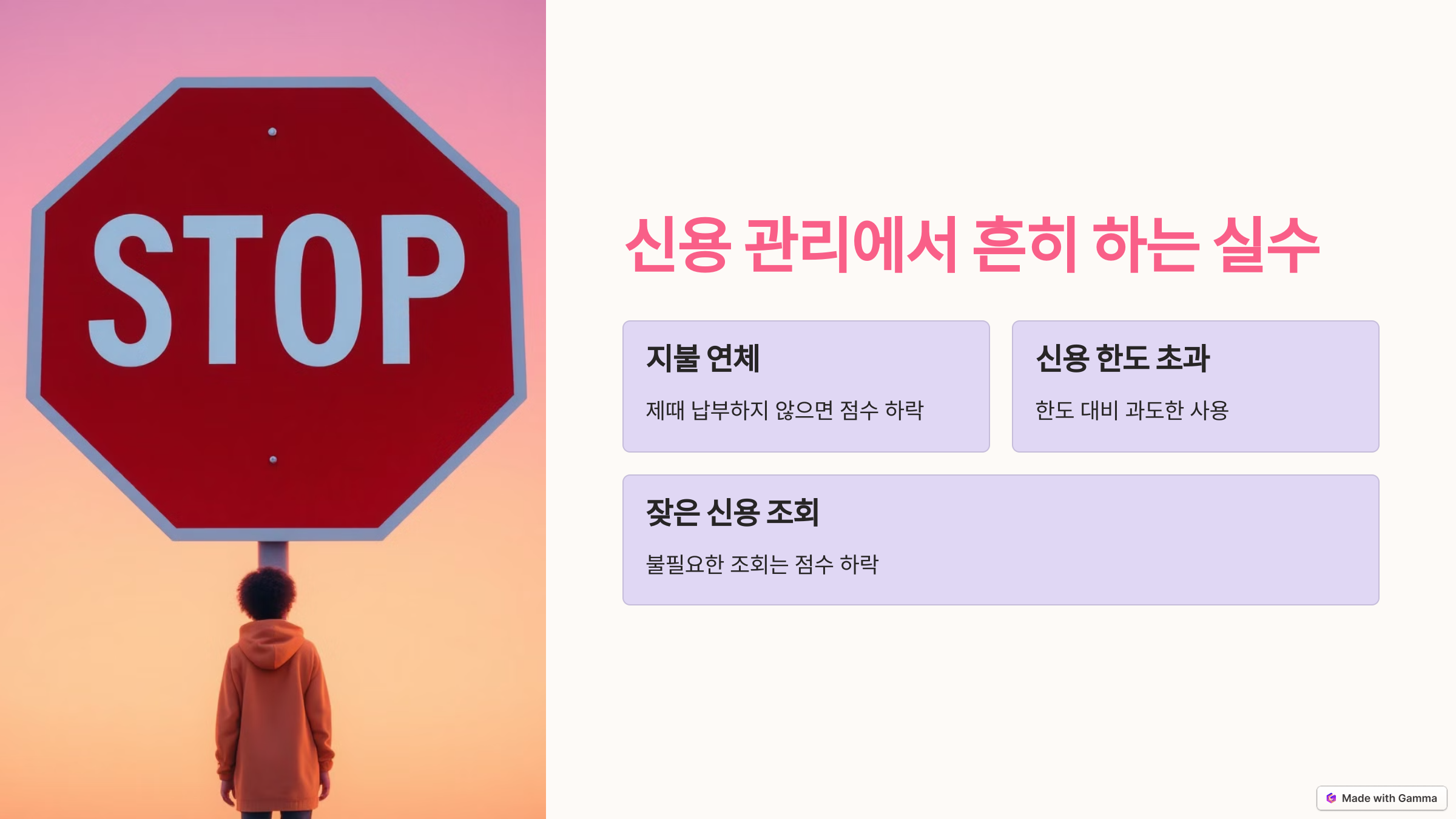 이 외에도, 본인의 신용 기록을 확인하지 않는 것도 큰 실수예요. 정기적으로 점수를 체크하고 이상 여부를 확인하는 것은 신용 관리의 기본이에요.