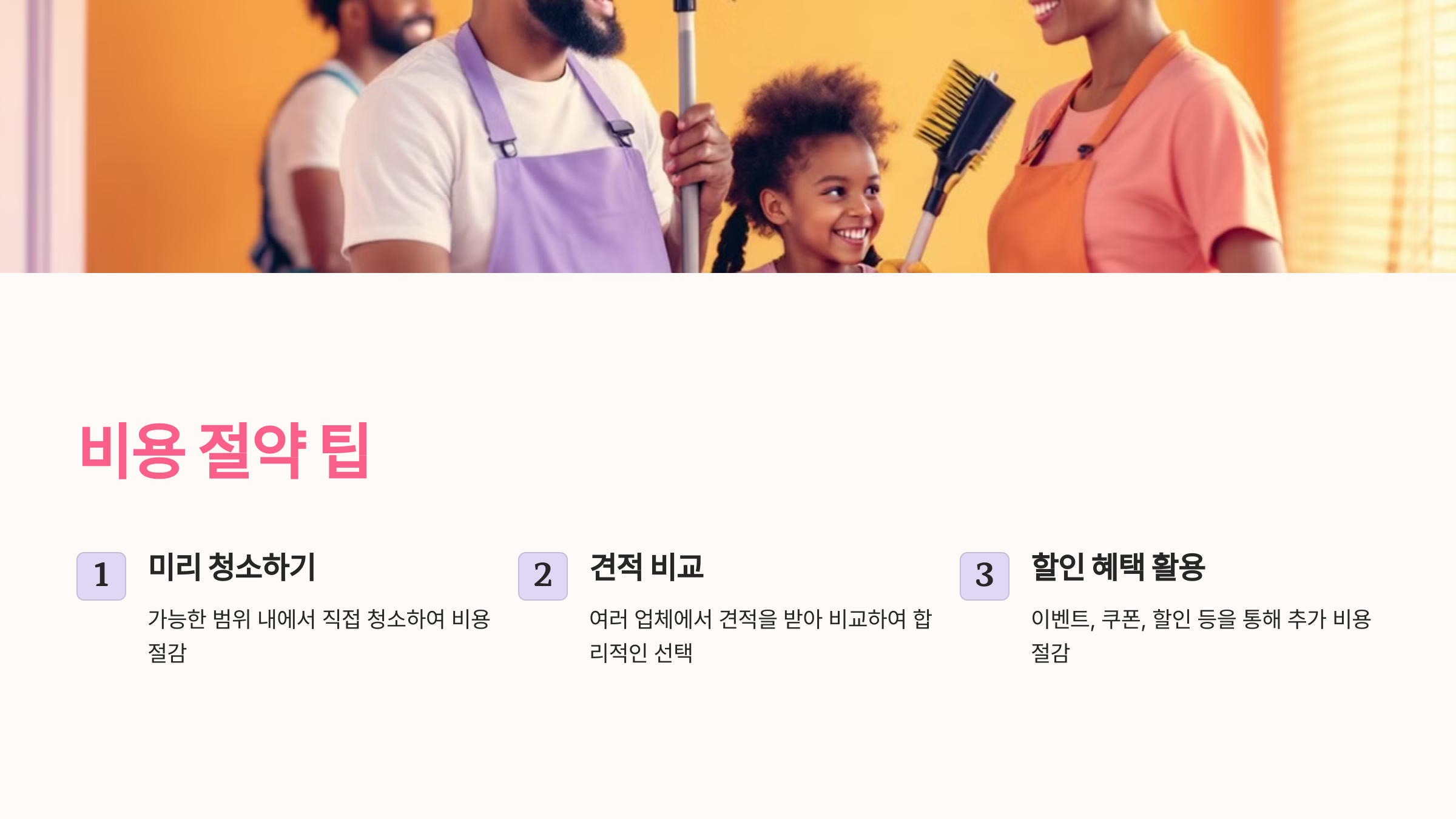 두 번째로, 청소 항목을 꼼꼼히 확인하세요. 계약 전에 제공되는 서비스 목록을 확인하고, 추가 요금 여부를 미리 물어보는 것이 좋아요. 이를 통해 예상치 못한 비용 증가를 방지할 수 있어요.
