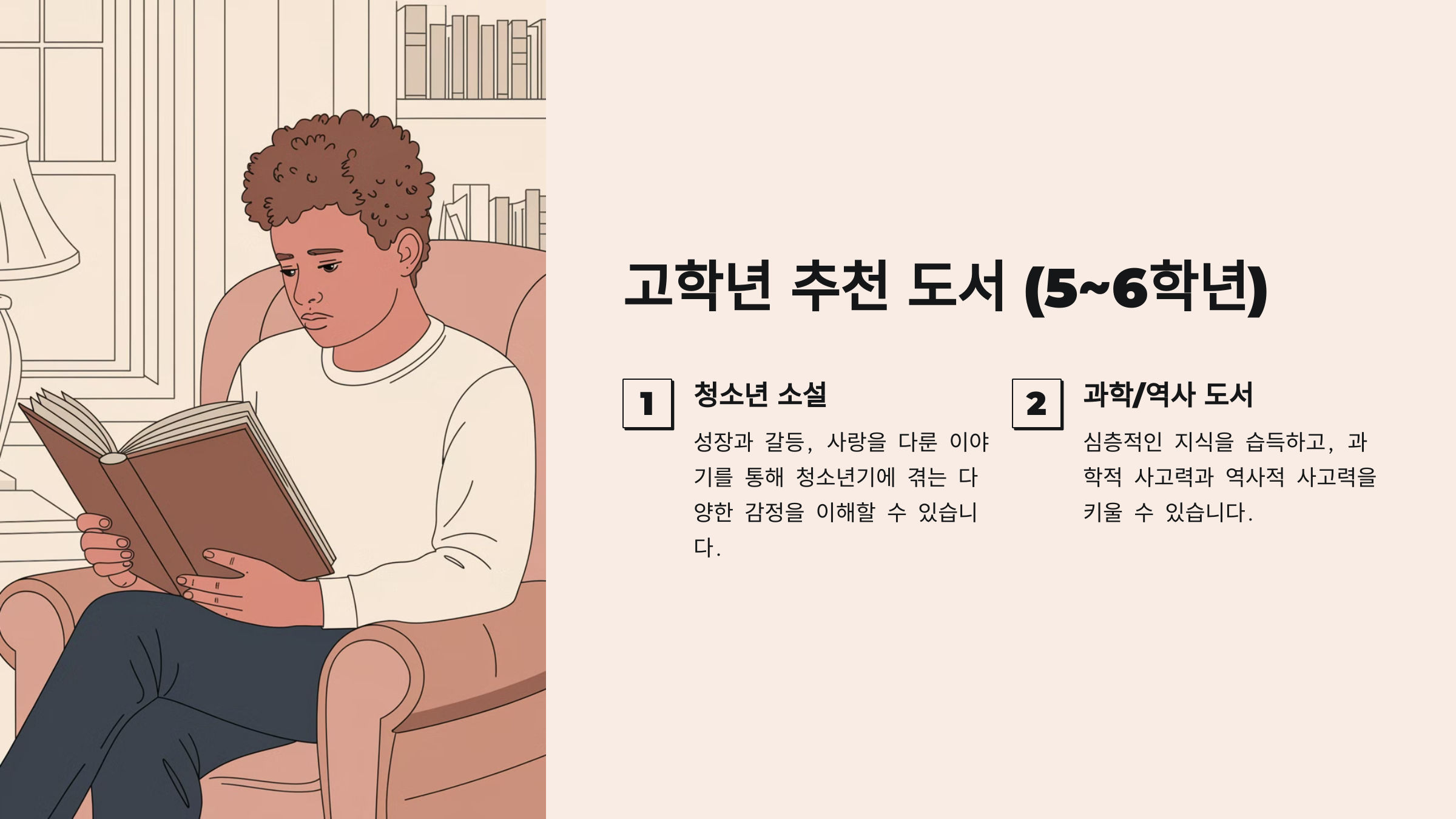 고학년은 논리적 사고력과 독해력이 발달하는 시기예요. 다양한 주제와 깊이 있는 내용을 담은 책을 읽으며 사고의 폭을 넓힐 수 있어요: