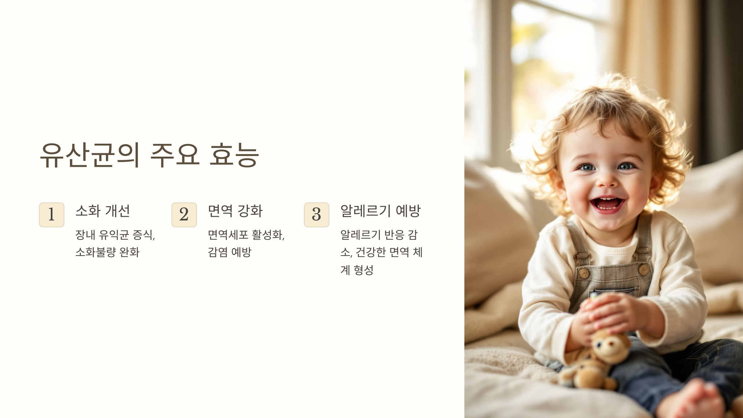 유산균은 알레르기 예방과 면역 체계 강화에 도움을 줍니다.