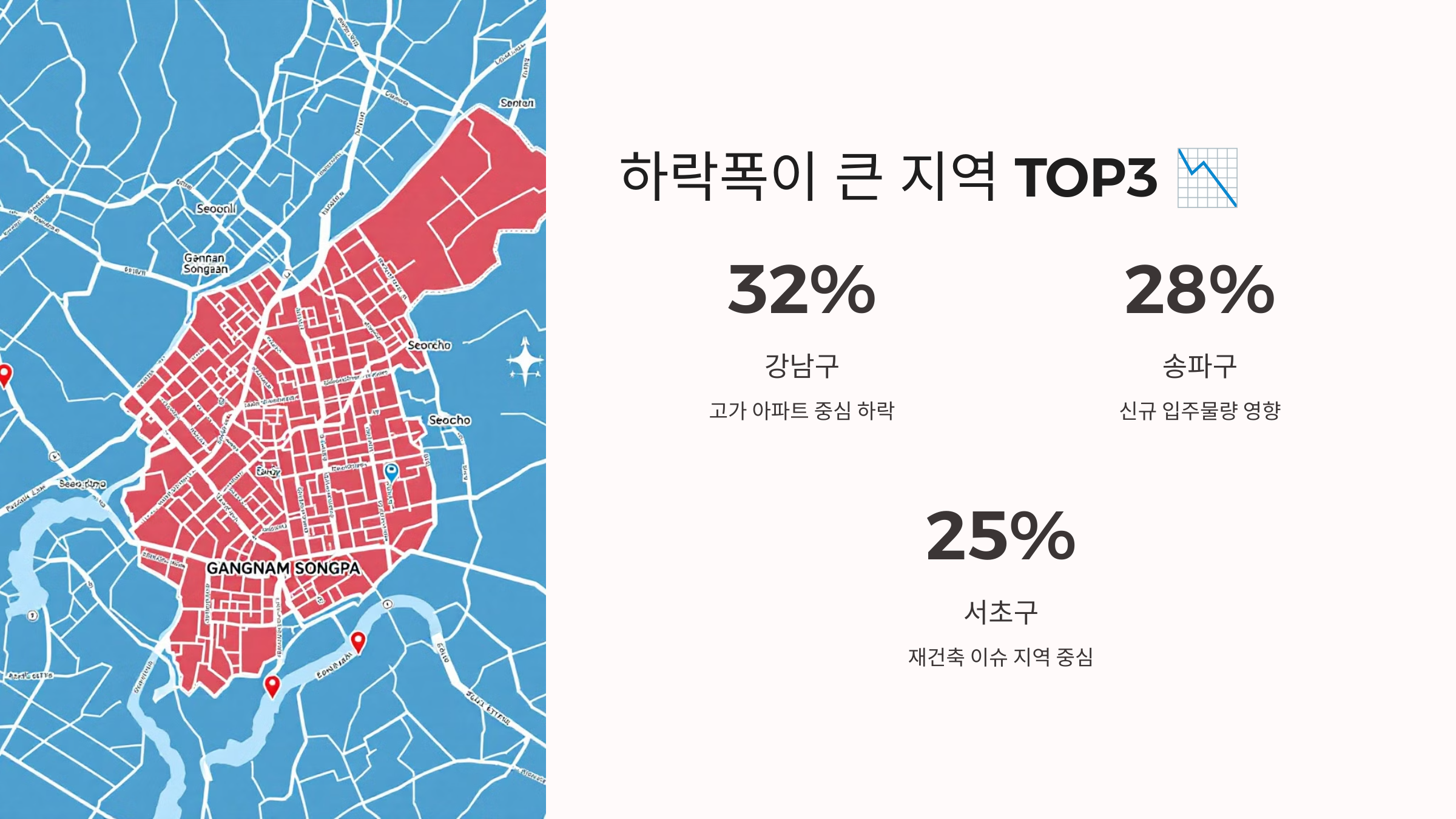 서울 전세가 하락은 전 지역에서 발생하고 있지만, 특히 하락폭이 큰 지역들이 있어요. 주로 입주 물량이 많거나, 매매가 하락이 두드러지는 지역이 그 중심이에요. 그럼 지금부터 2025년 기준으로 전세가 하락폭이 가장 컸던 3곳을 살펴볼게요.