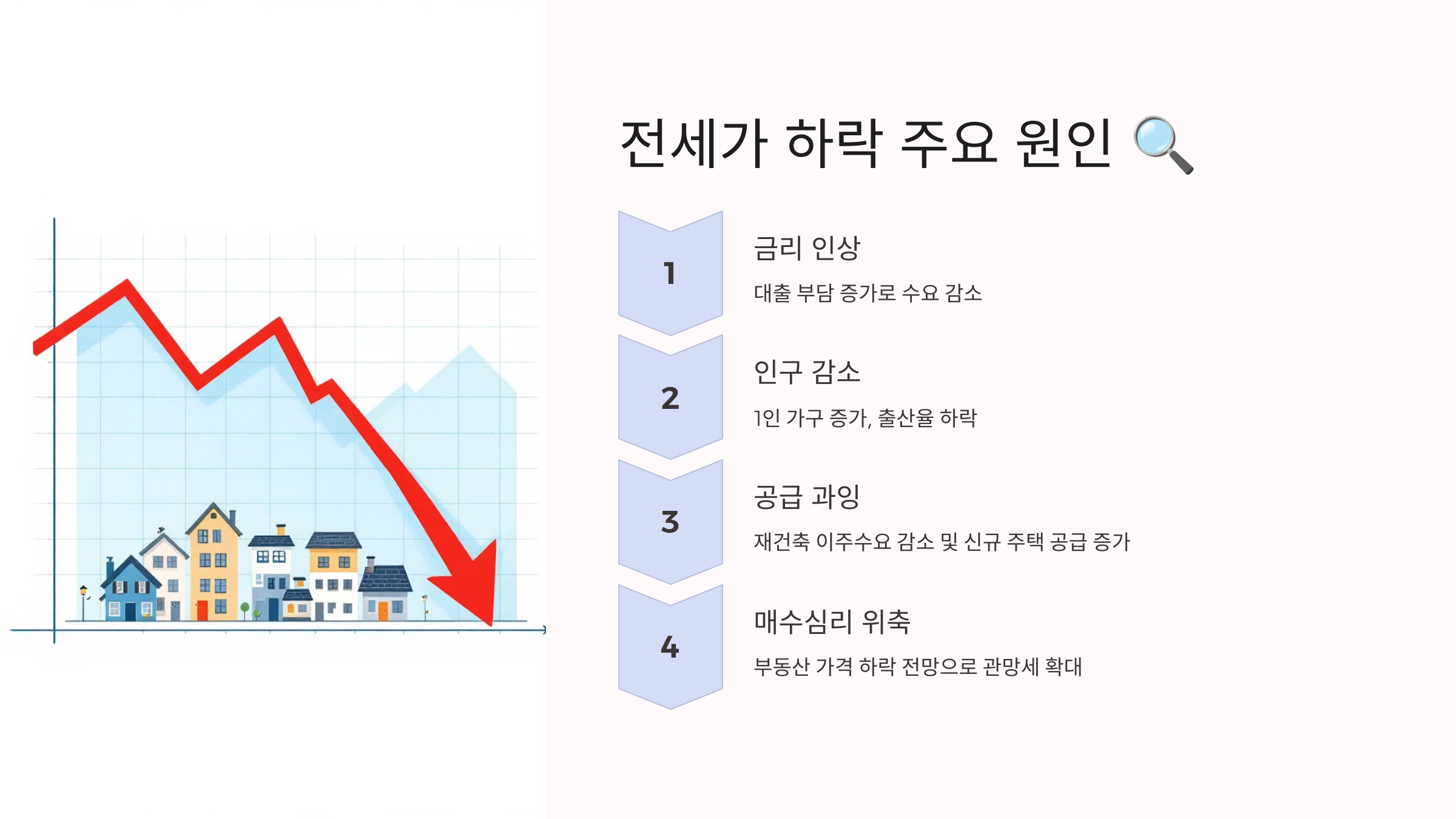 서울 전세가는 장기적인 하락세를 이어가고 있어요. 그럼 왜 이렇게 떨어지고 있는지 원인을 구체적으로 살펴볼까요? 🔍
