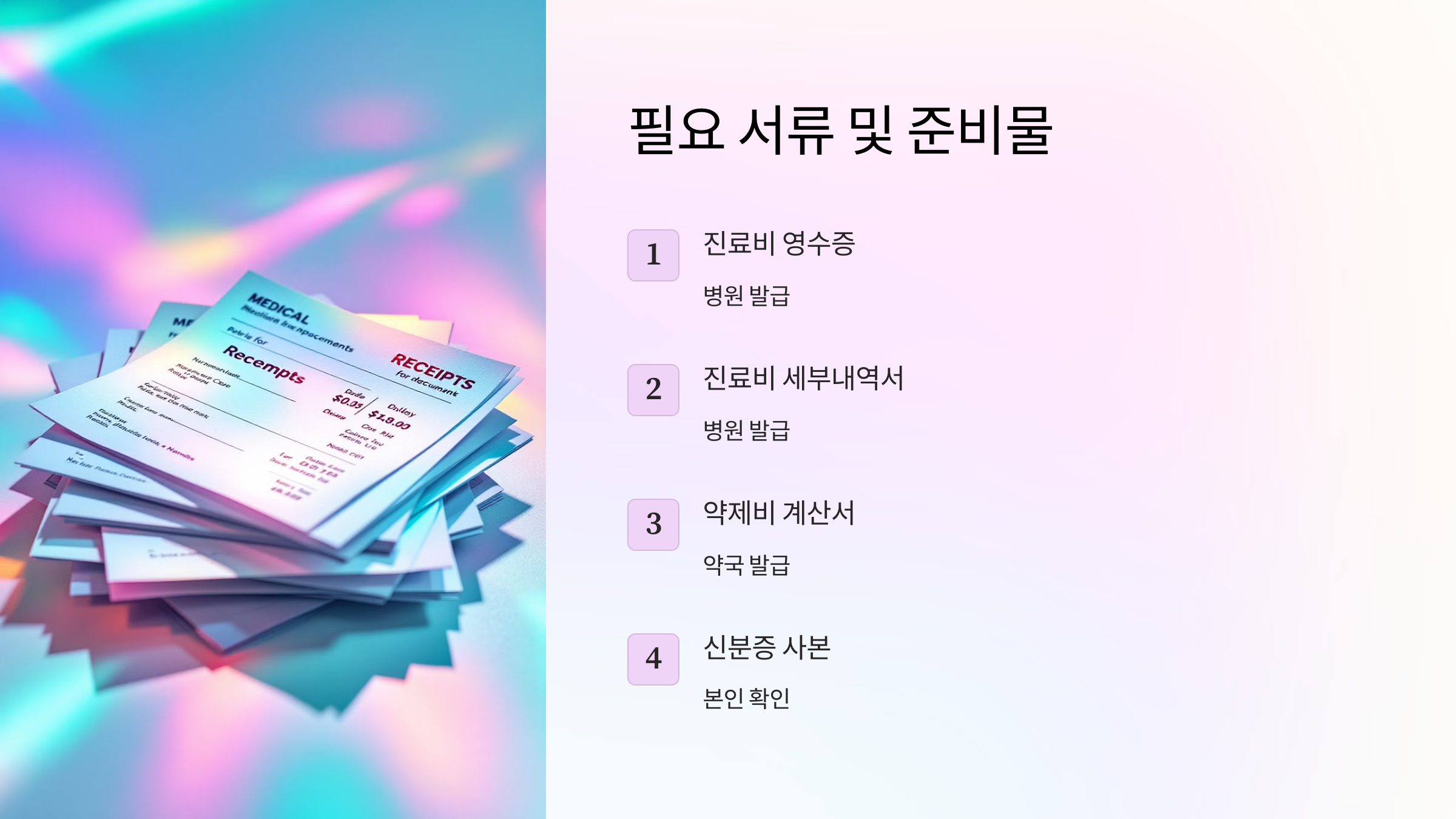 | 📄 서류 미비 주의 | **진료비 영수증 + 진료비 세부 내역서** 필수 제출 |