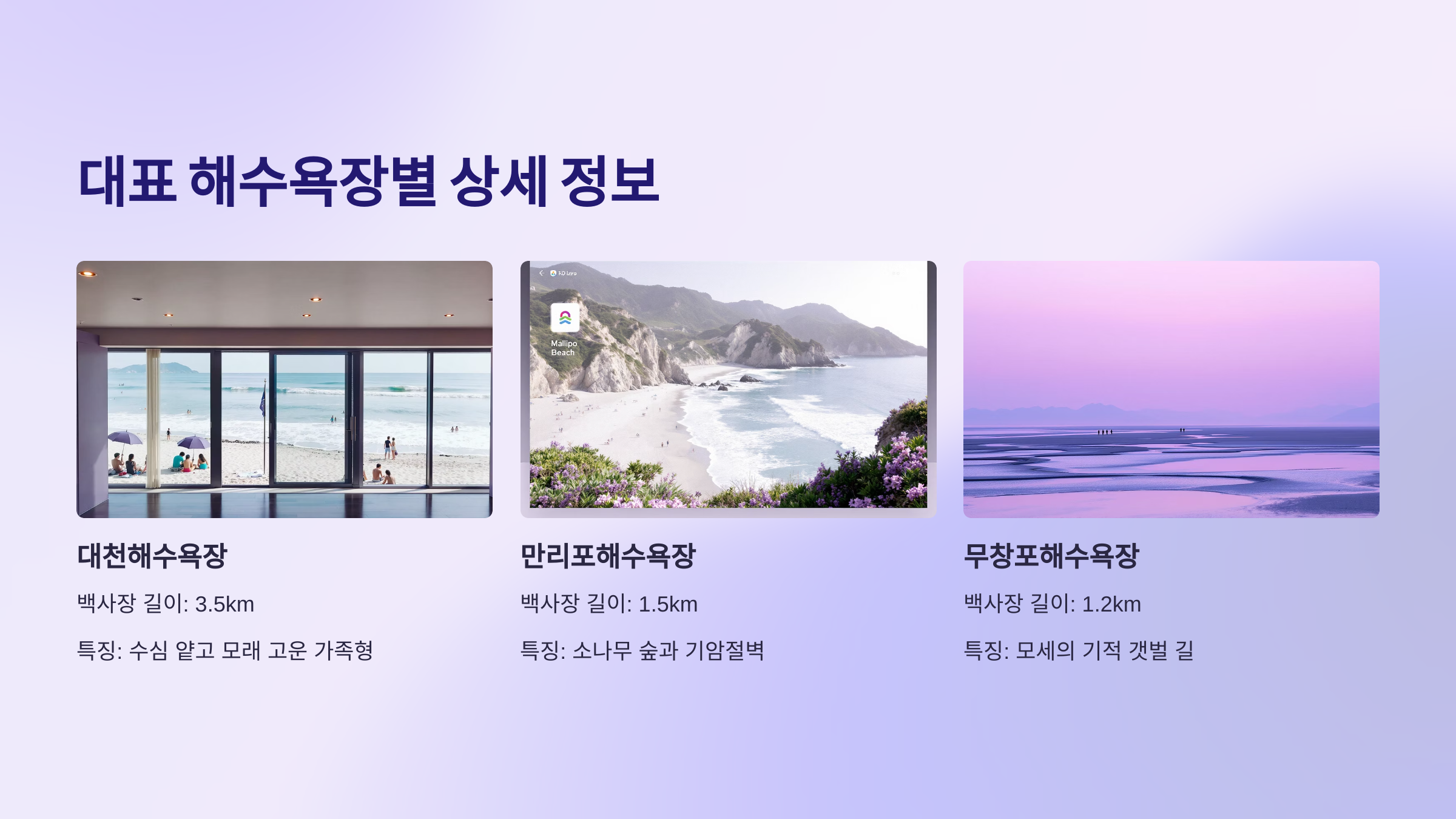 🟢 **다음 섹션: 대표 해수욕장별 상세 정보** 태안, 군산, 안면도 등 인기 해변별 특징과 시설 안내 이어집니다 👇👇