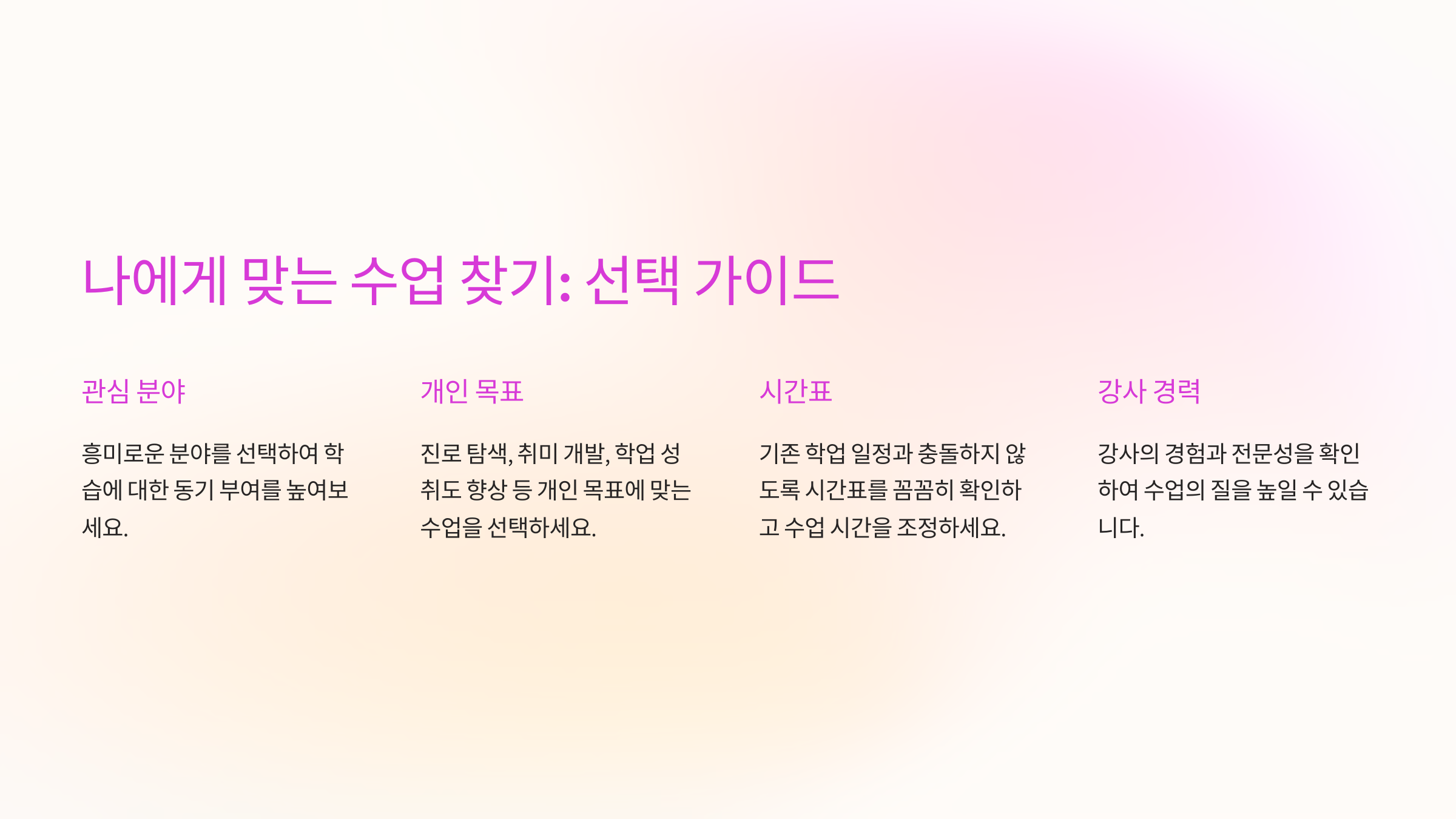 방과후 수업을 선택할 때는 아이의 흥미와 적성을 중심으로 결정하는 것이 가장 중요해요. 아래는 선택 시 참고할 만한 팁이에요:
