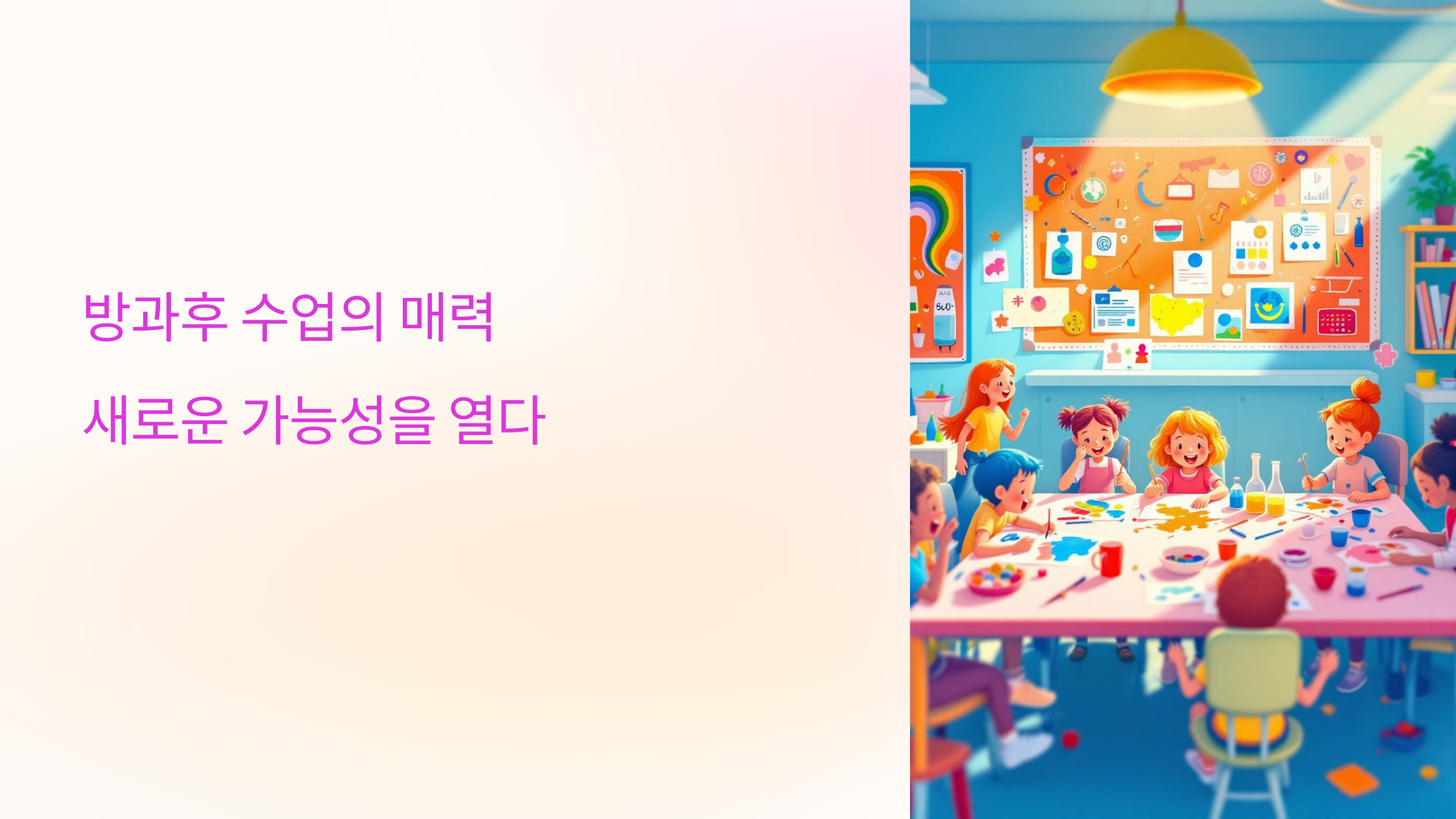 방과후 수업은 학습 외의 다양한 활동을 통해 아이들이 균형 잡힌 성장을 하도록 도와줘요. 다음은 방과후 수업의 주요 장점이에요: