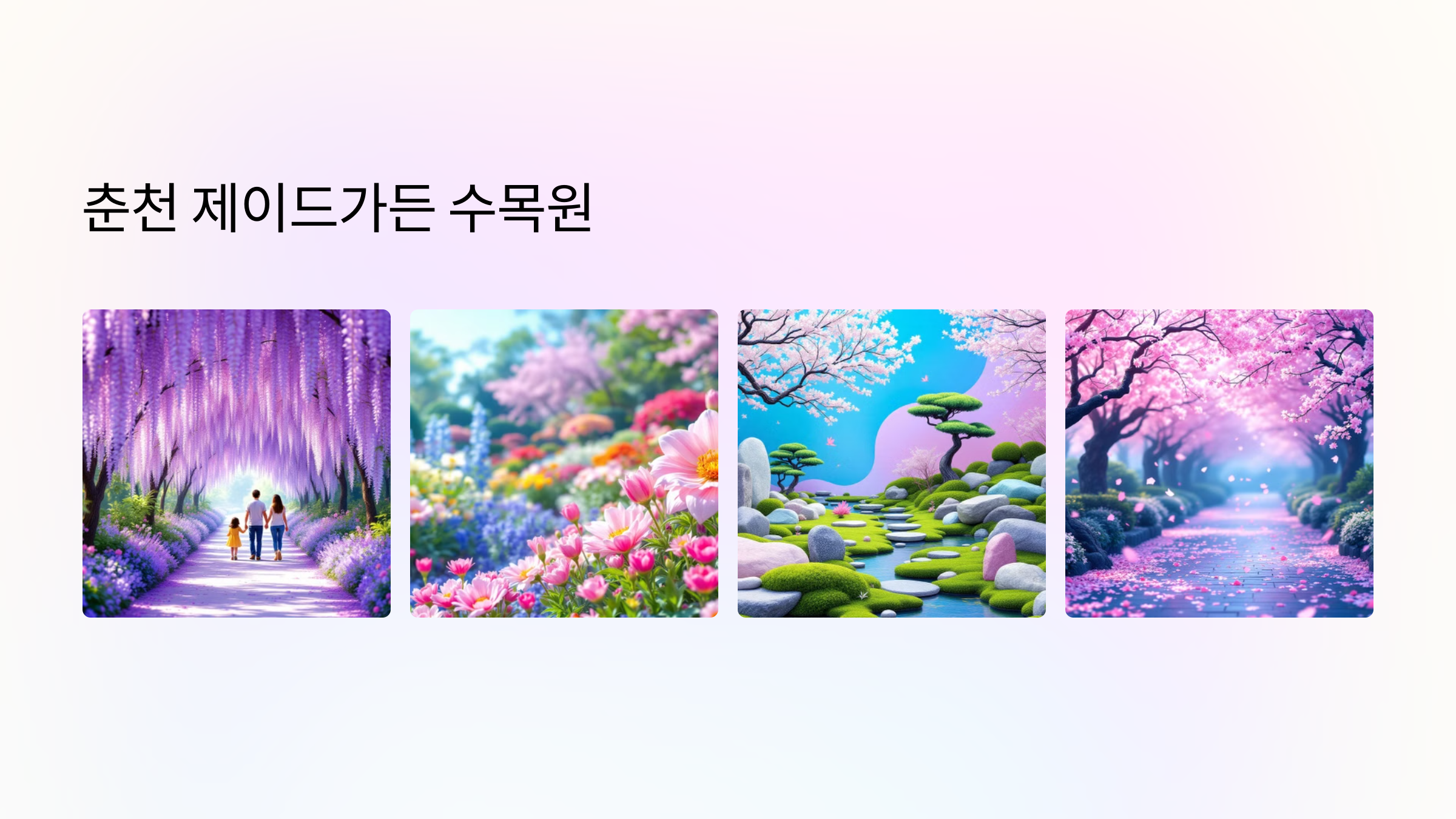 | 풍경 | 꽃, 나무, 잔디밭 | 자연 친화적 감성 자극 |