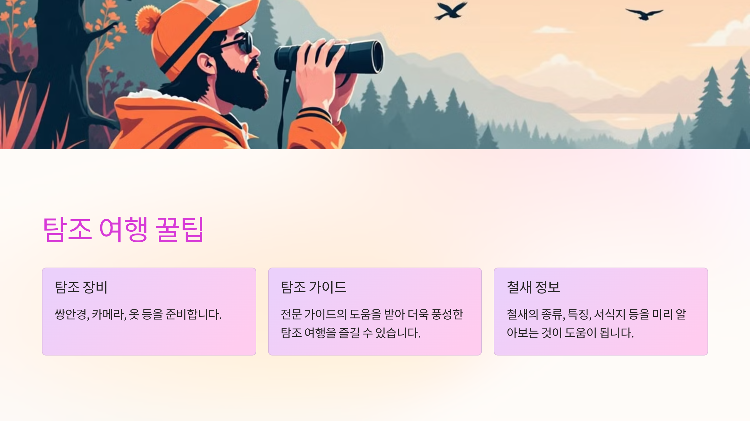 탐조 여행의 주요 코스
