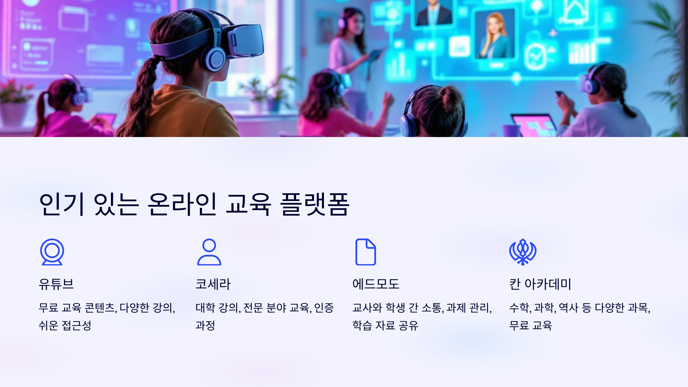 초등학생들을 위해 많은 온라인 교육 플랫폼이 개발되고 있어요. 아래는 국내외에서 널리 사용되는 주요 플랫폼들이에요: