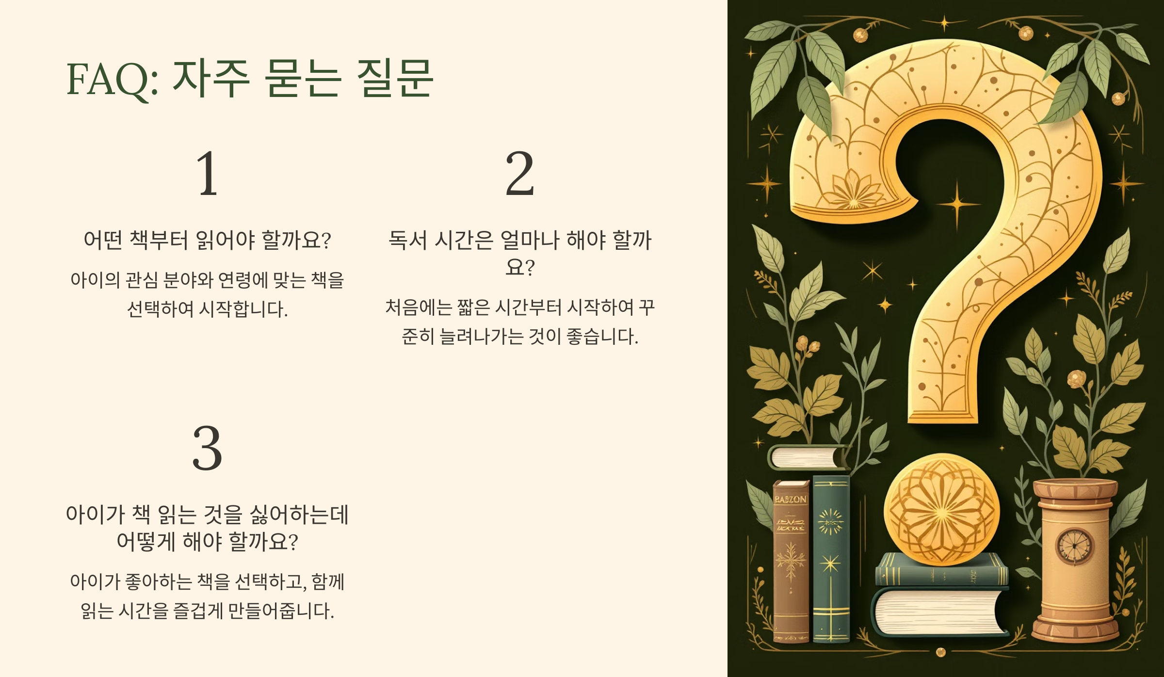 A2. 아이가 관심 있어 하는 주제의 책을 찾아주고, 함께 읽거나 책과 관련된 활동을 해보는 것이 효과적이에요.