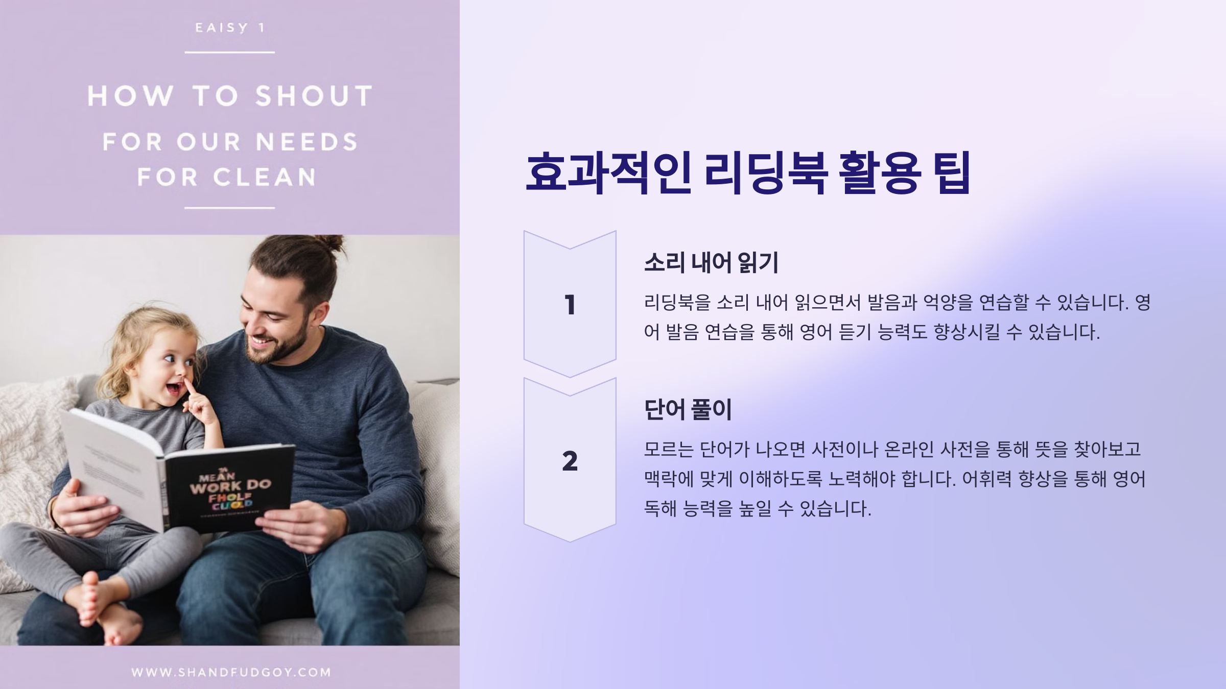 리딩북을 제대로 활용하면 아이의 영어 실력을 크게 향상시킬 수 있어요. 몇 가지 유용한 팁을 소개할게요: