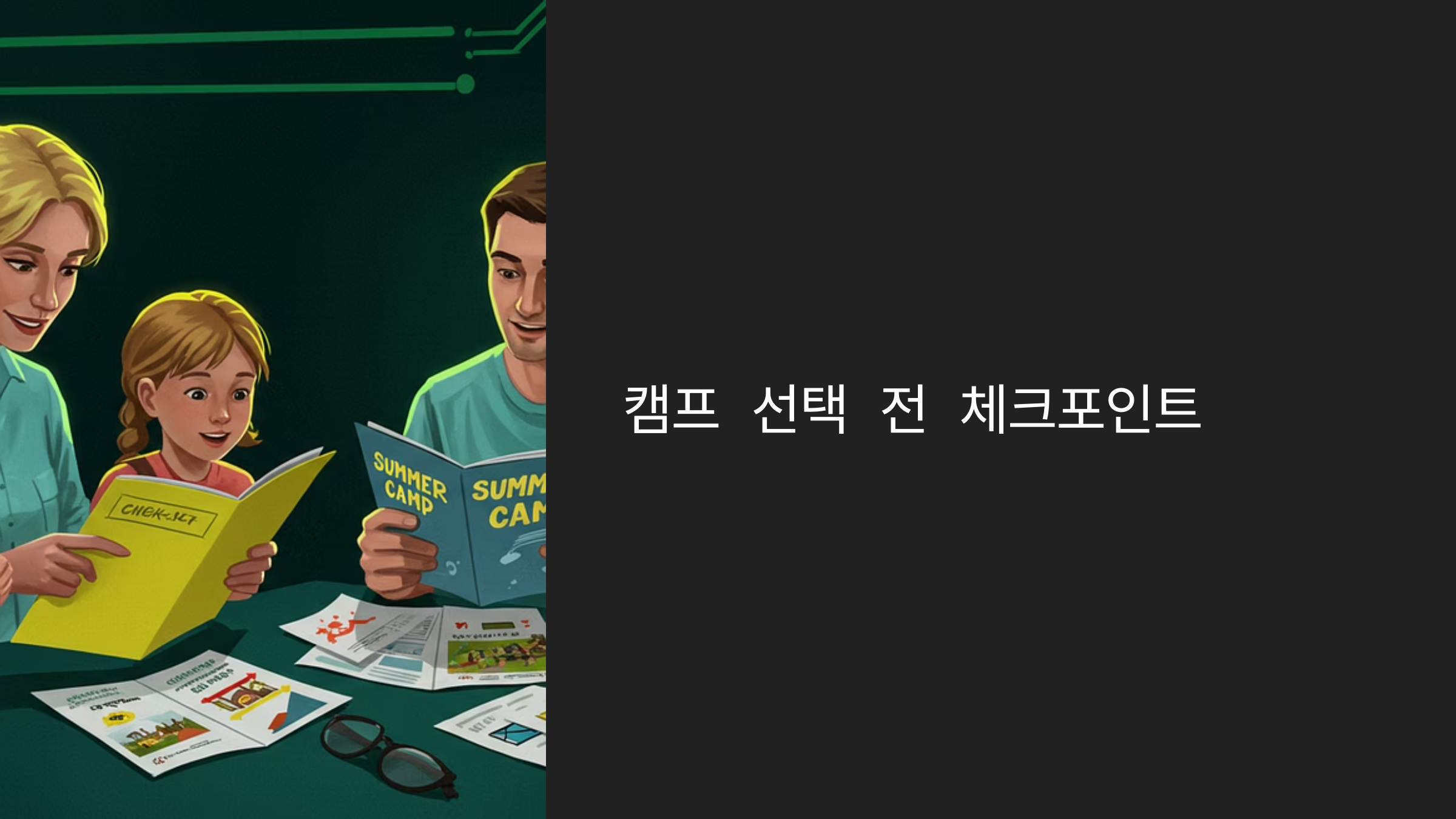 다음 섹션에서는 이렇게 다양한 캠프 중 어떤 걸 고를지 막막한 분들을 위해, 캠프 선택 시 체크해야 할 항목들을 구체적으로 정리해드릴게요! 📋