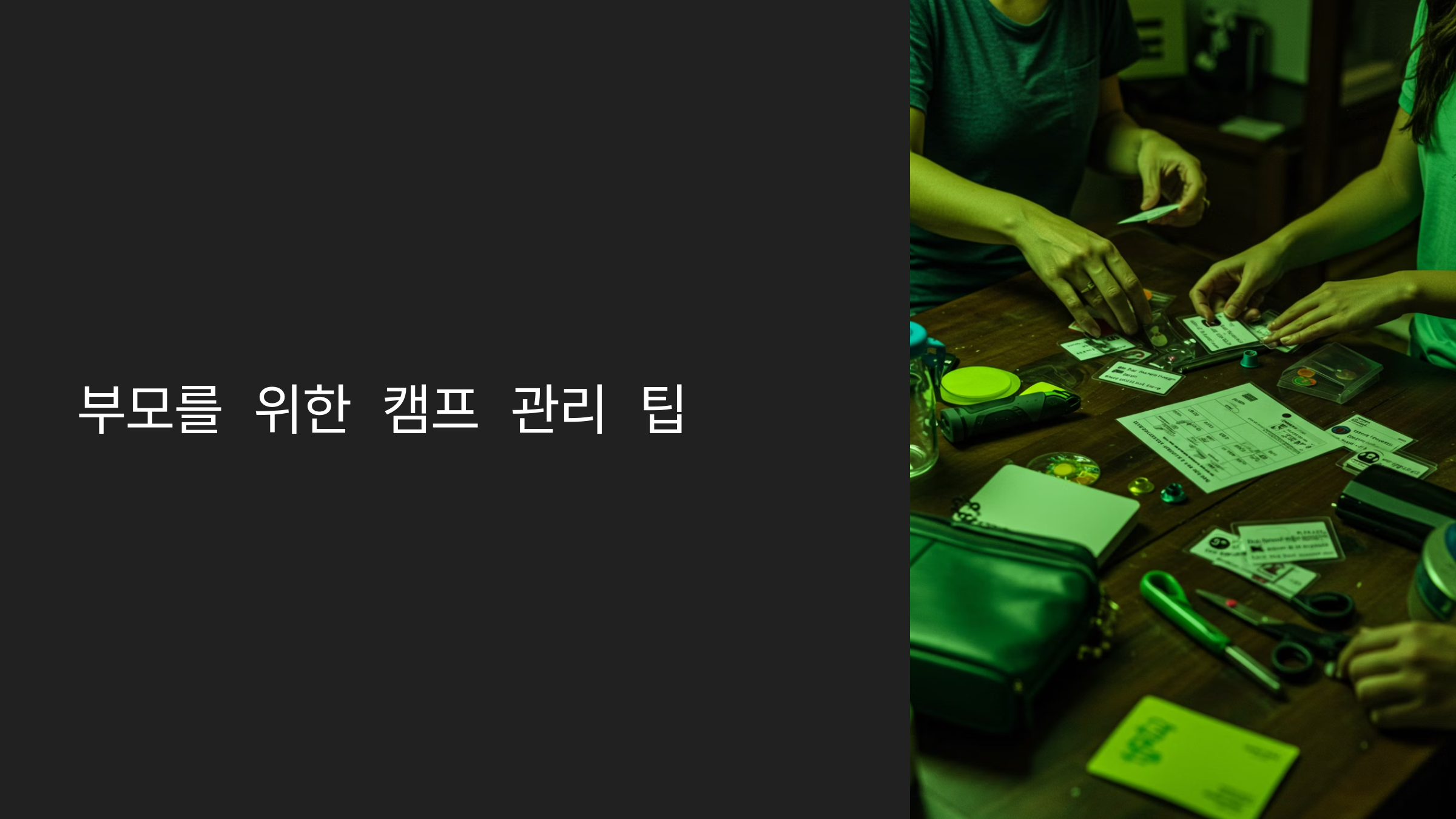 다음 섹션에서는 우리 아이가 캠프를 안전하고 유익하게 마칠 수 있도록 부모님이 해줄 수 있는 관리 팁들을 소개할게요. 🧭