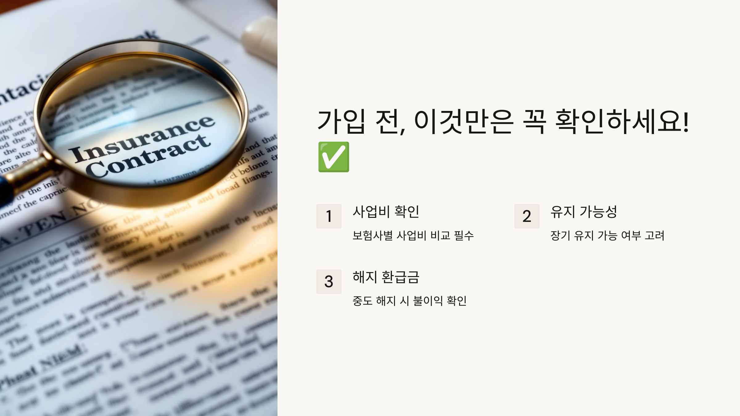 연금저축보험은 장기적으로 유지해야 혜택이 크기 때문에, 가입 전에 **꼭 체크해야 할 사항**이 있어요.
