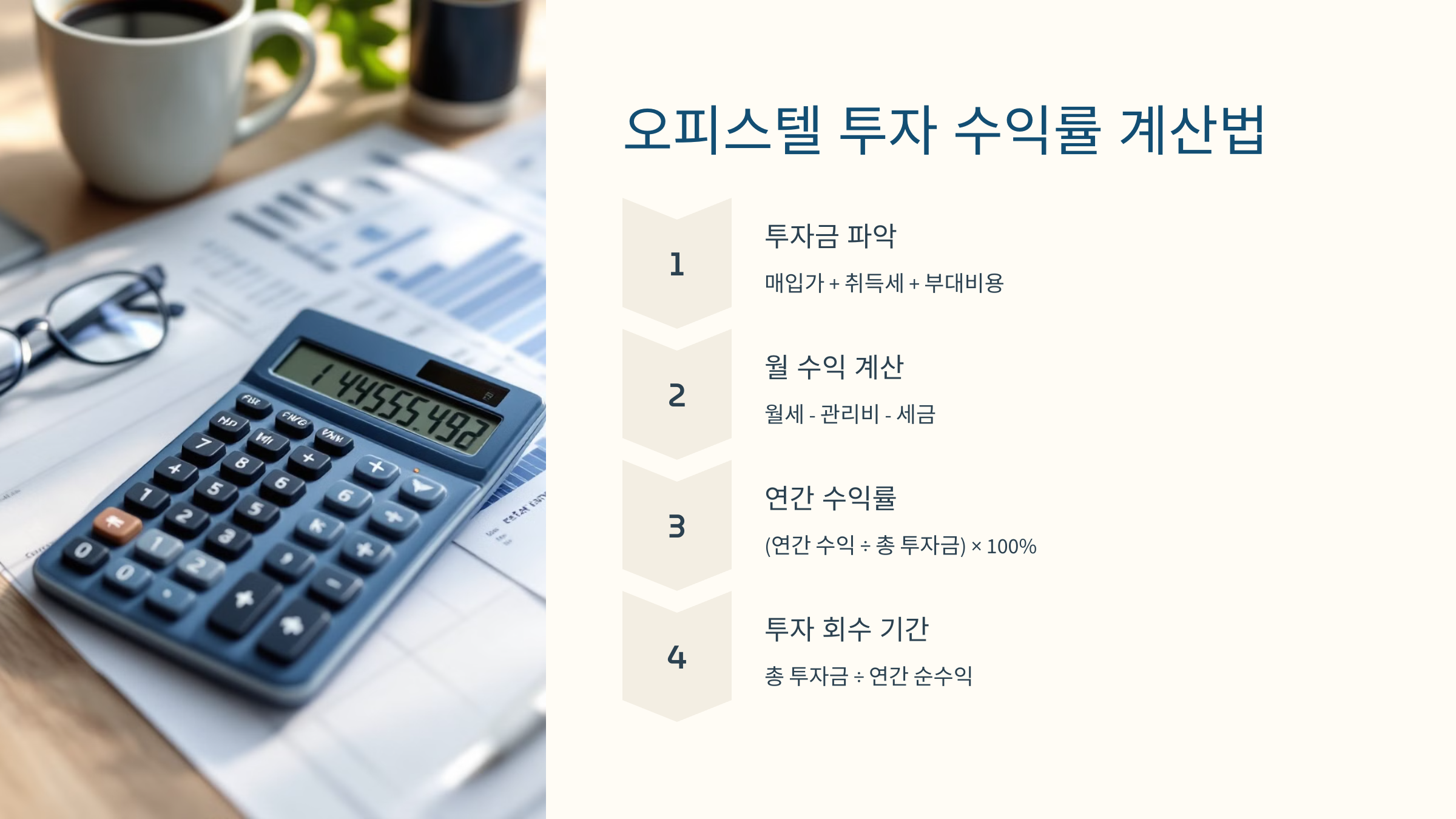📢 다음으로, 오피스텔 투자 수익률 계산법을 알아볼게요! 👇