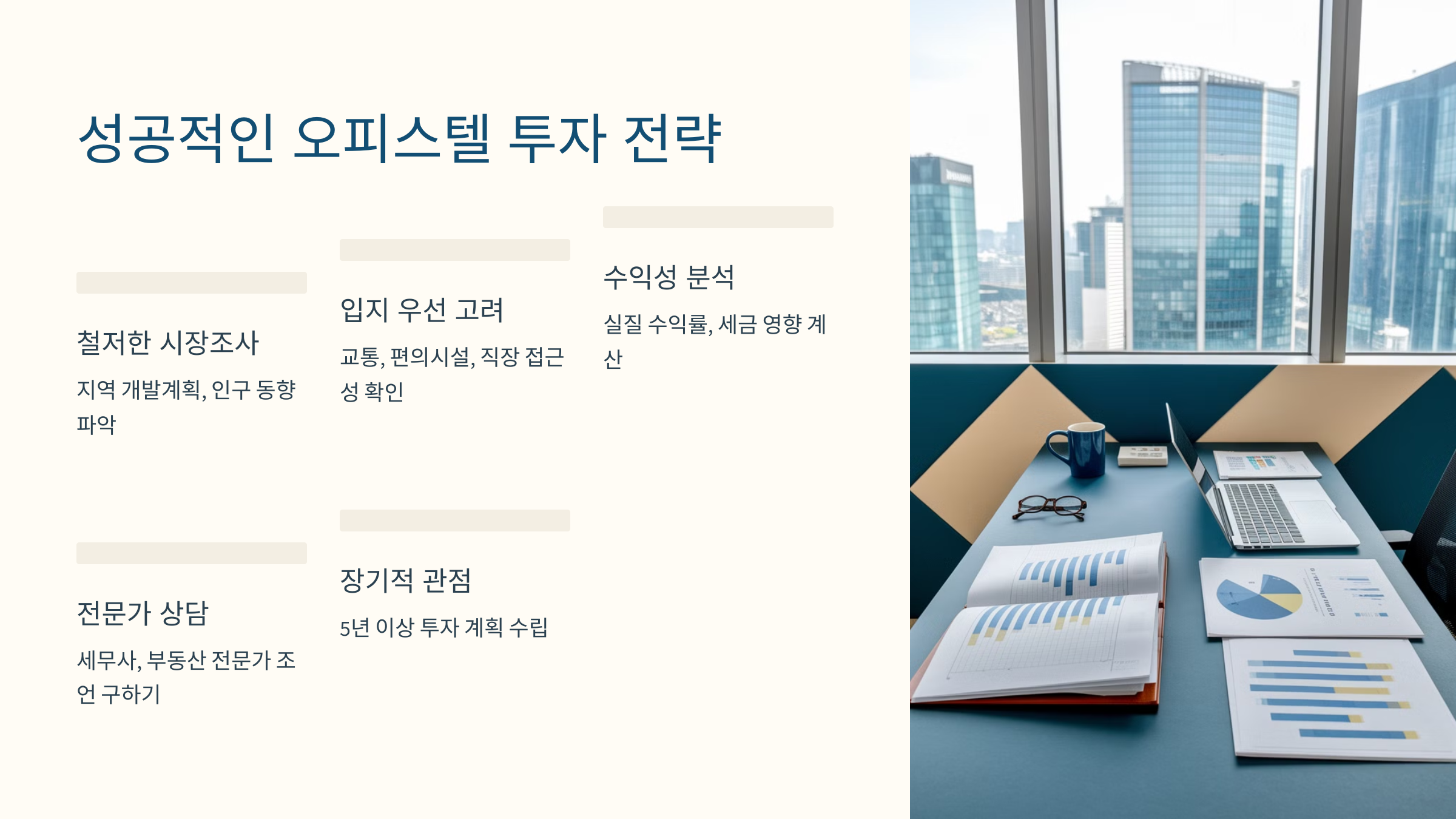 다음은 오피스텔 투자 시 반드시 고려해야 할 5가지 핵심 전략이에요! 🎯