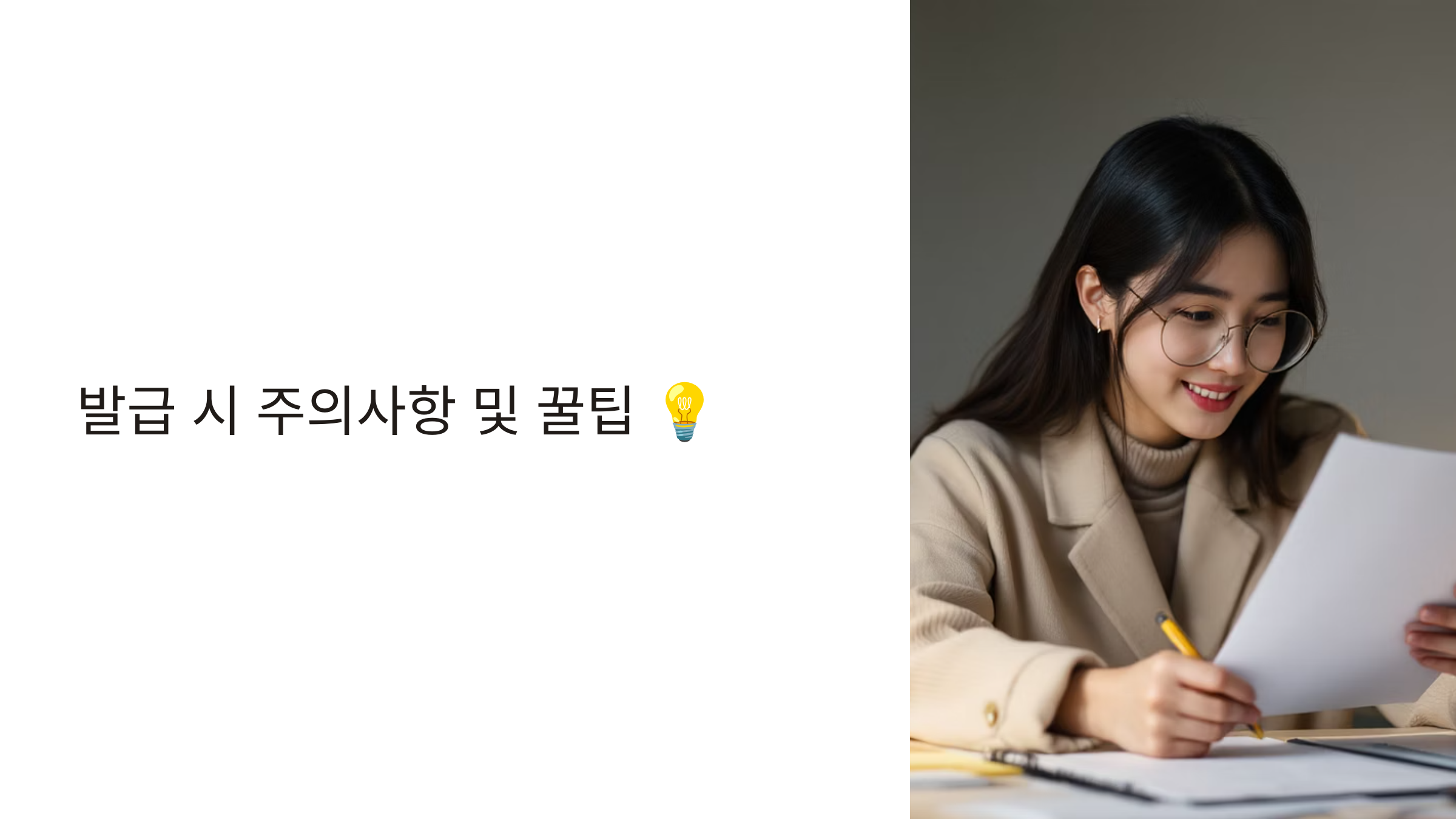 이제 비용과 시간까지 알았으니, 어떤 방식이 내 상황에 가장 잘 맞는지 선택만 하면 돼요! 마지막으로 발급 시 실수하지 않도록 꿀팁도 정리해드릴게요! 🤓