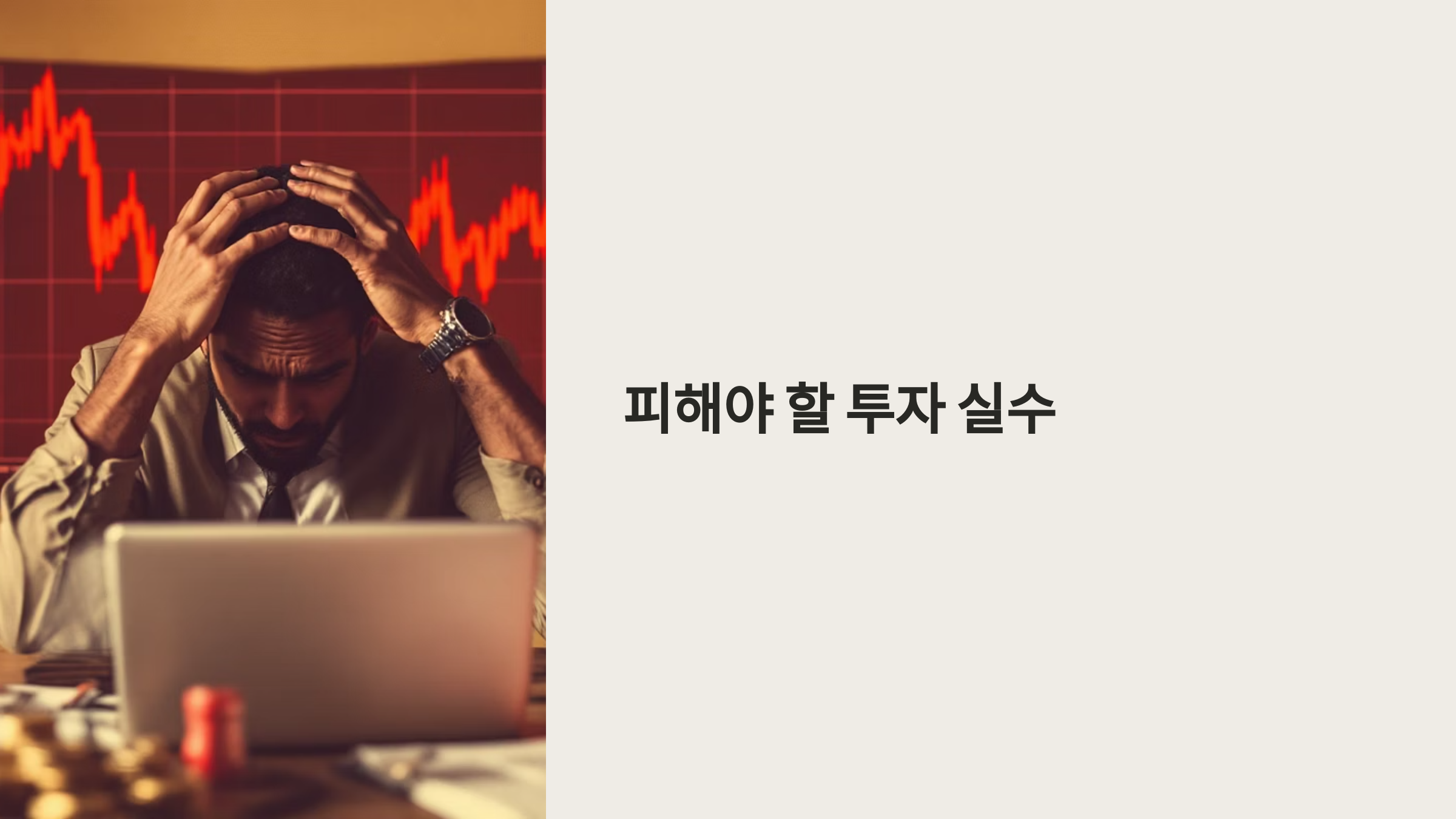 📉 4. 투자 중단 후 방치 혼란스러워서 아무것도 안 하고 그냥 두는 경우도 많아요. 하지만 위기일수록 현금흐름 점검, 자산 재배분, 투자 재조정이 필요해요. 마비 상태는 손실을 키울 뿐이에요. 위기 때일수록 주도적으로 움직여야 해요.💡