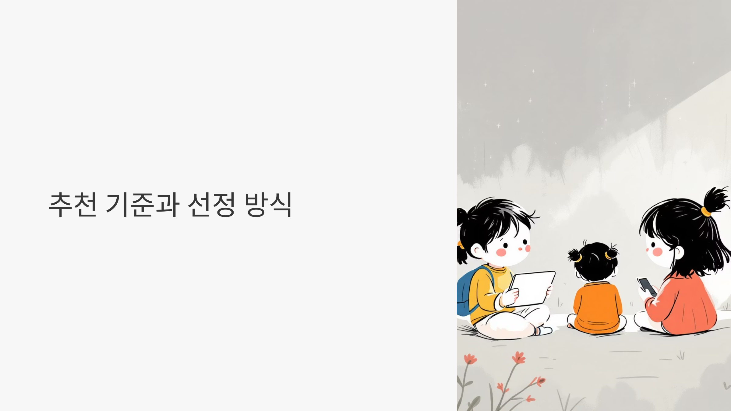 이번 추천 리스트는 아래의 4가지 기준으로 선별했어요. 첫째, 연령 적합성이에요. 초등학생 눈높이에 맞는 언어와 영상 구성인지 확인했어요. 둘째, 교육성이에요. 단순한 오락을 넘어서 아이가 얻을 수 있는 정보나 지식이 있는지를 살펴봤죠.