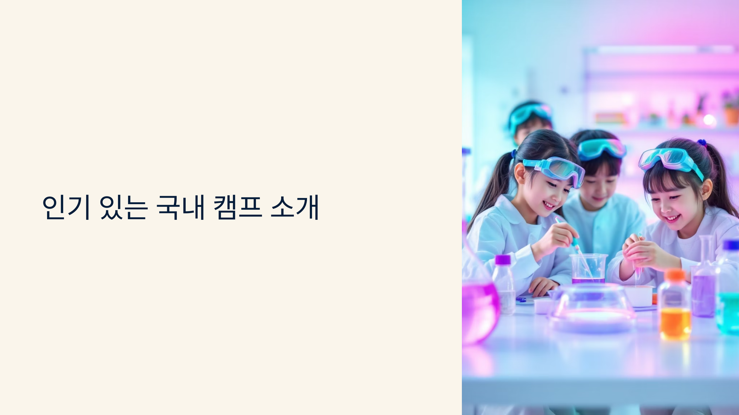 이제 어떤 캠프들이 인기 있는지, 실제 국내 캠프 추천 리스트를 소개할게요! 🗺️🏫