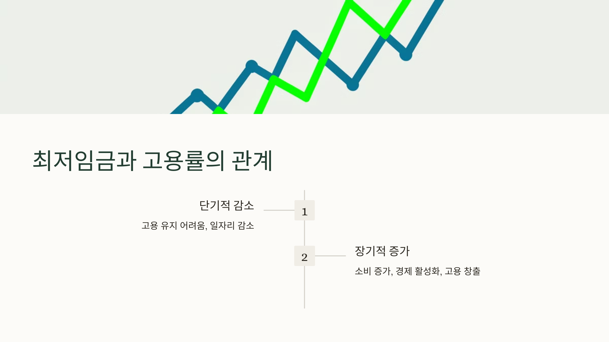 최저임금이 오르면 **노동자들의 소득이 증가하지만, 동시에 기업의 인건비 부담도 커져요**. 💰 이로 인해 **고용률이 증가할 수도, 감소할 수도 있는 복합적인 결과**가 나타날 수 있어요.
