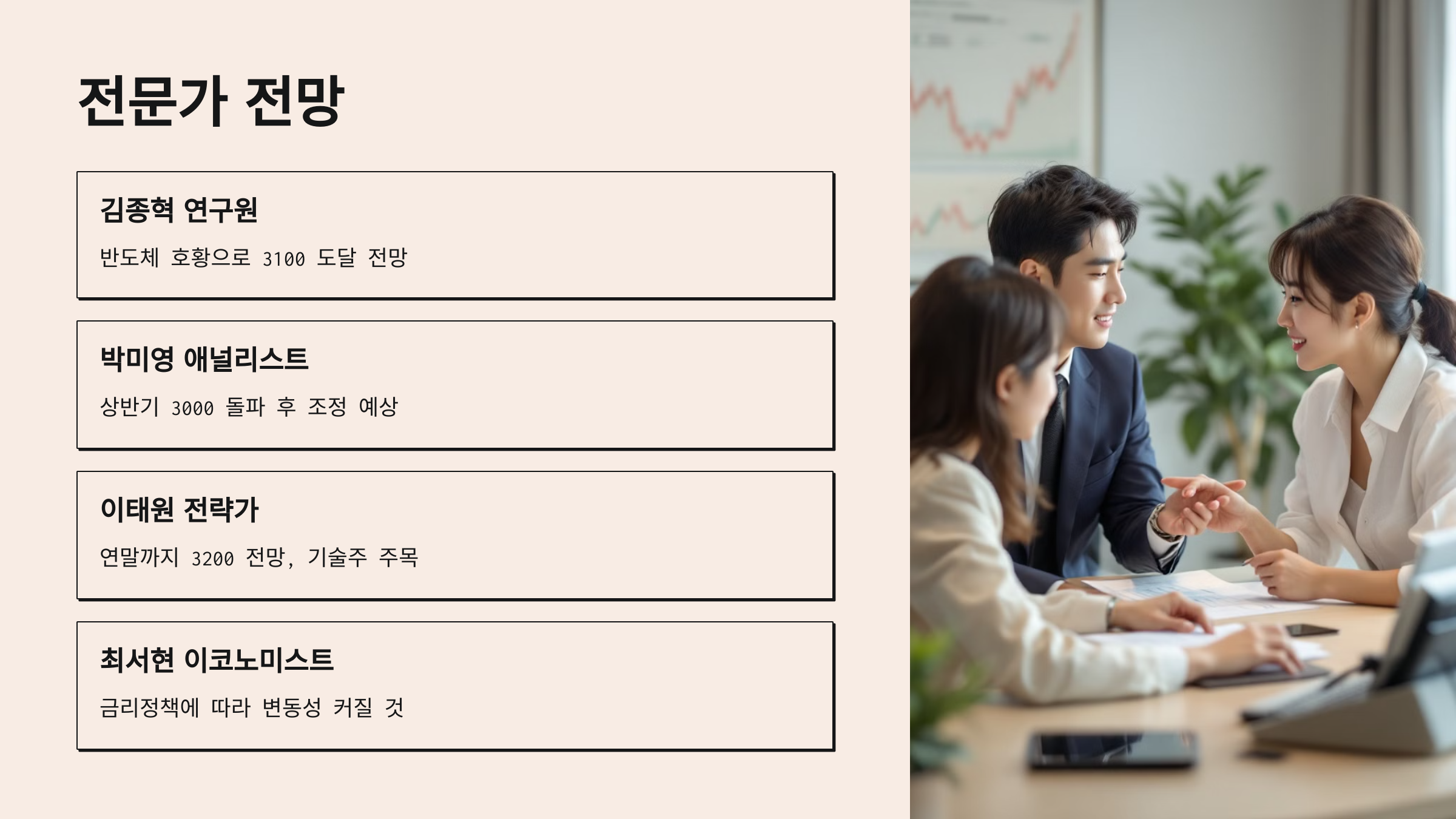 전문가들은 반도체, 미국 금리, 외국인 투자 등을 가장 중요한 변수로 보고 있어요. 🧐