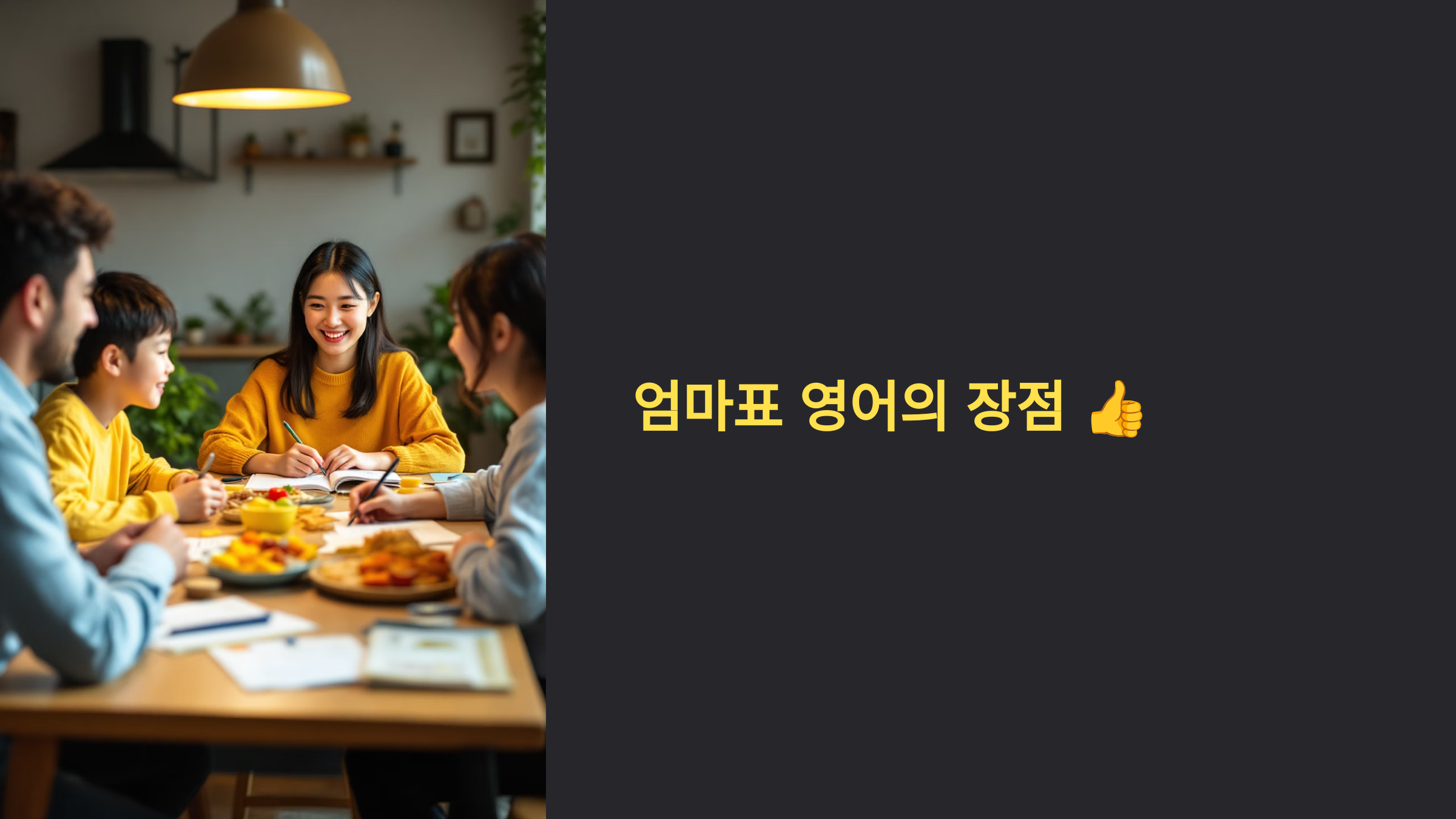 정형화된 커리큘럼보다는 아이의 성향과 수준에 맞춰 조절할 수 있어서 맞춤형 학습이 가능하다는 게 가장 큰 장점이에요. 특히 아이가 스트레스를 덜 받기 때문에 영어에 대한 거부감 없이 자연스럽게 흡수하게 된답니다. 🌈