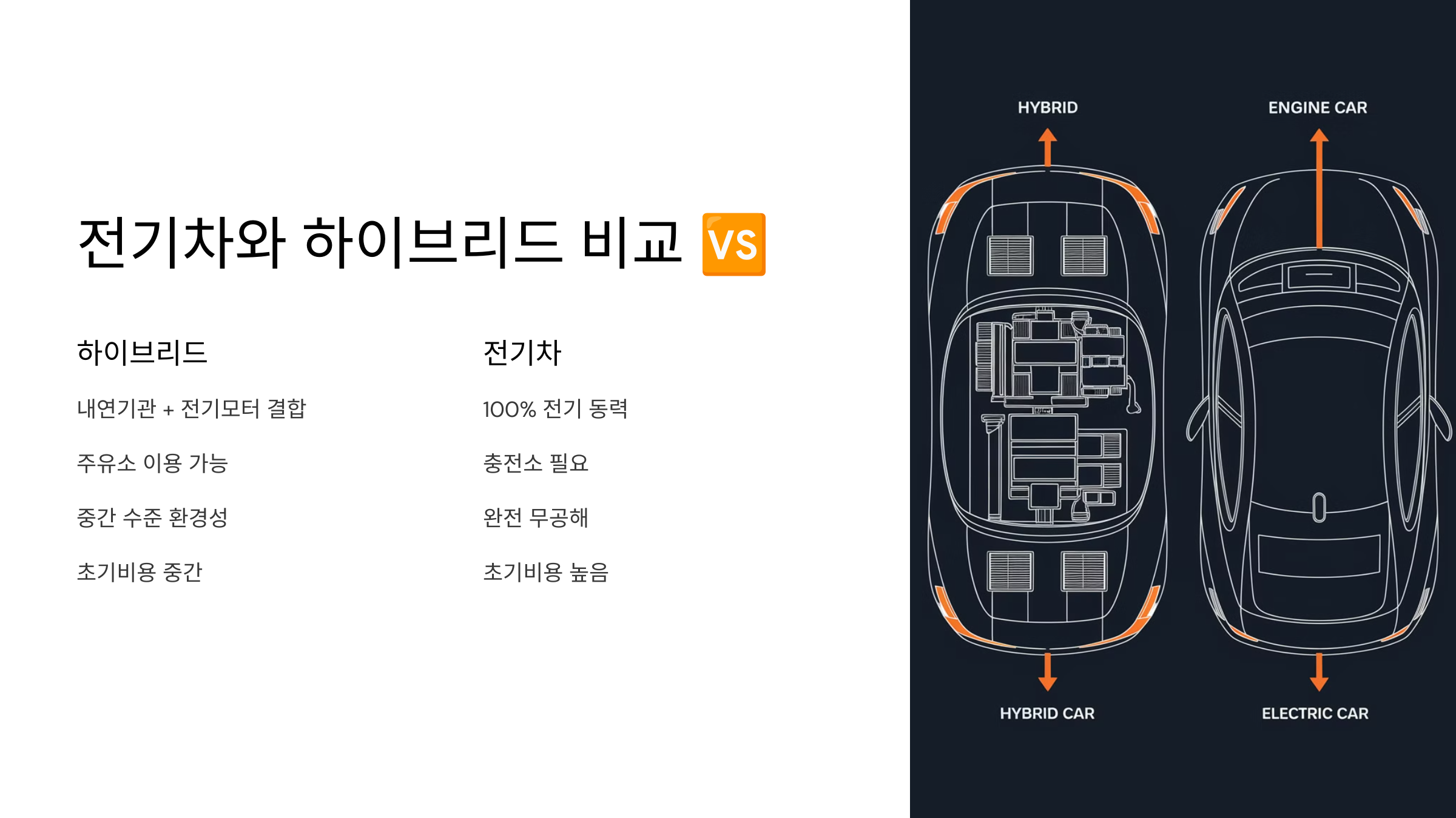 다음으로는 하이브리드 차량과 전기차를 비교해볼까요? 🆚