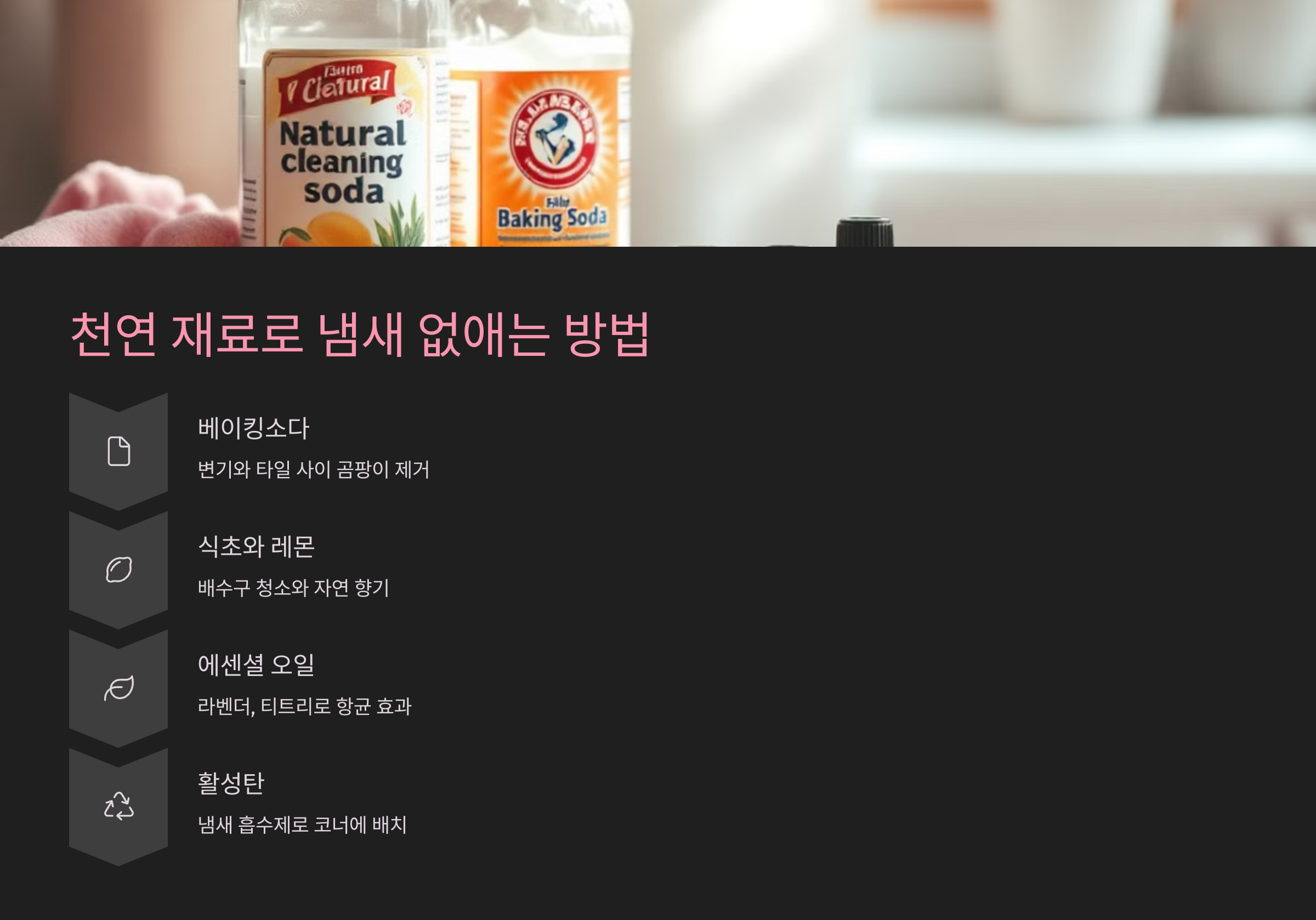 냄새 제거는 강한 세제보다, 꾸준한 관리와 자연친화적인 방법으로도 충분히 가능해요. 자극 없는 천연 청소, 요즘 대세랍니다 🌱