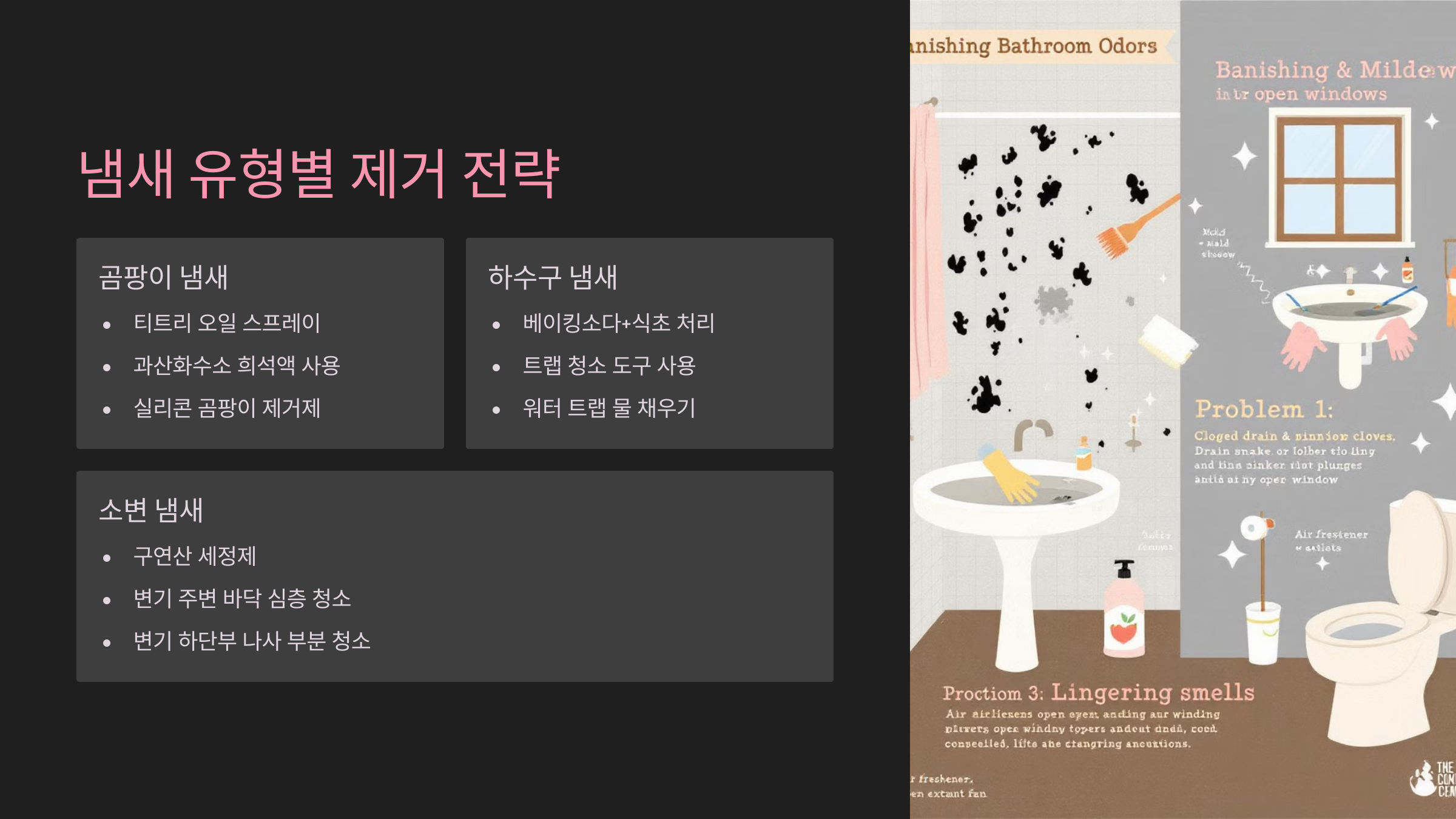 🚽 냄새 유형별 제거 방법 요약표