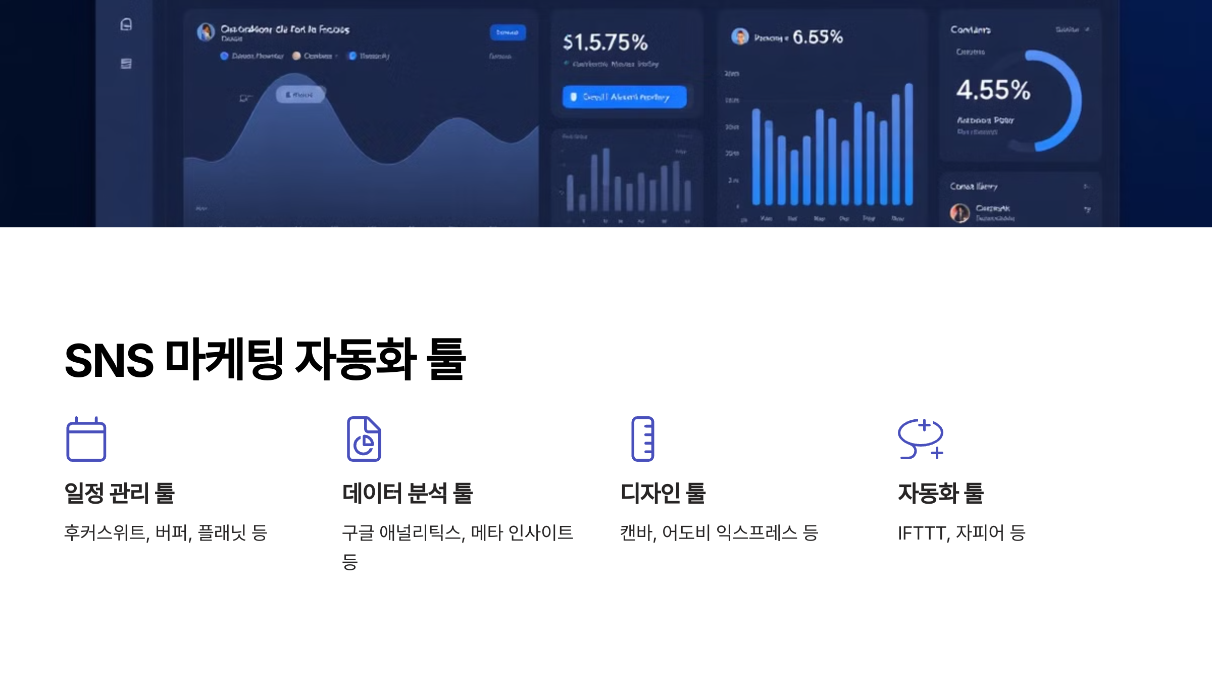 1인 SNS 마케팅 대행 부업은 효율이 생명이에요. 그래서 자동화 툴을 적극적으로 활용하면 시간을 절약하면서도 여러 클라이언트의 업무를 동시에 처리할 수 있어요! 😄