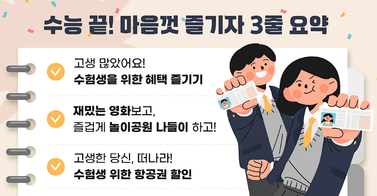 - 추가 혜택: 관광지 기념품 샵에서도 수험생 대상 할인 이벤트를 확인해 보세요.