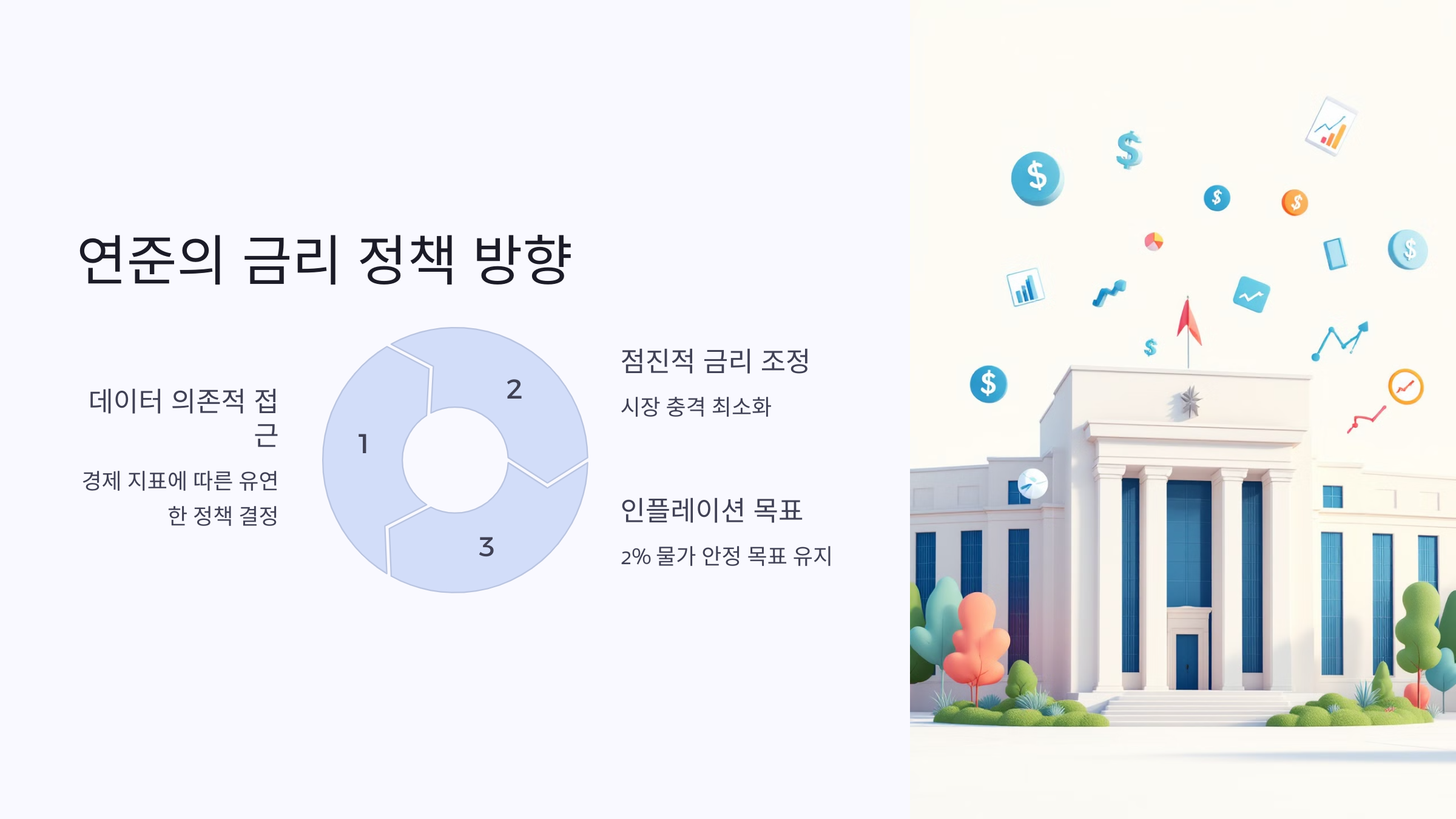 | 금리 동결 | 현재 금리를 유지하면서 경제 데이터를 관찰 | 2025년 상반기 |