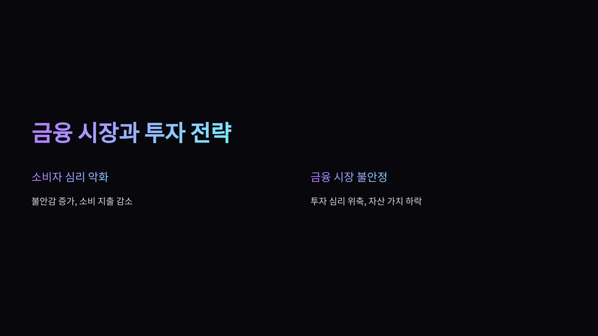 - 📈 주식 시장 불안정 → 기업 실적 악화, 투자 심리 위축