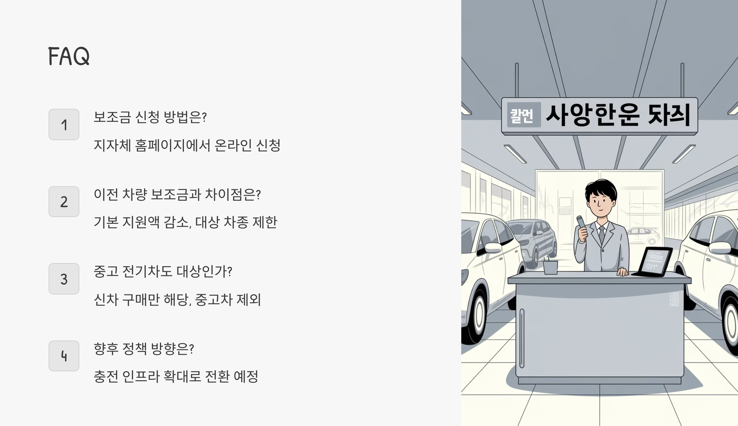 ❓ 이제 전기차 보조금 축소와 관련된 자주 묻는 질문(FAQ)을 확인해볼까요?