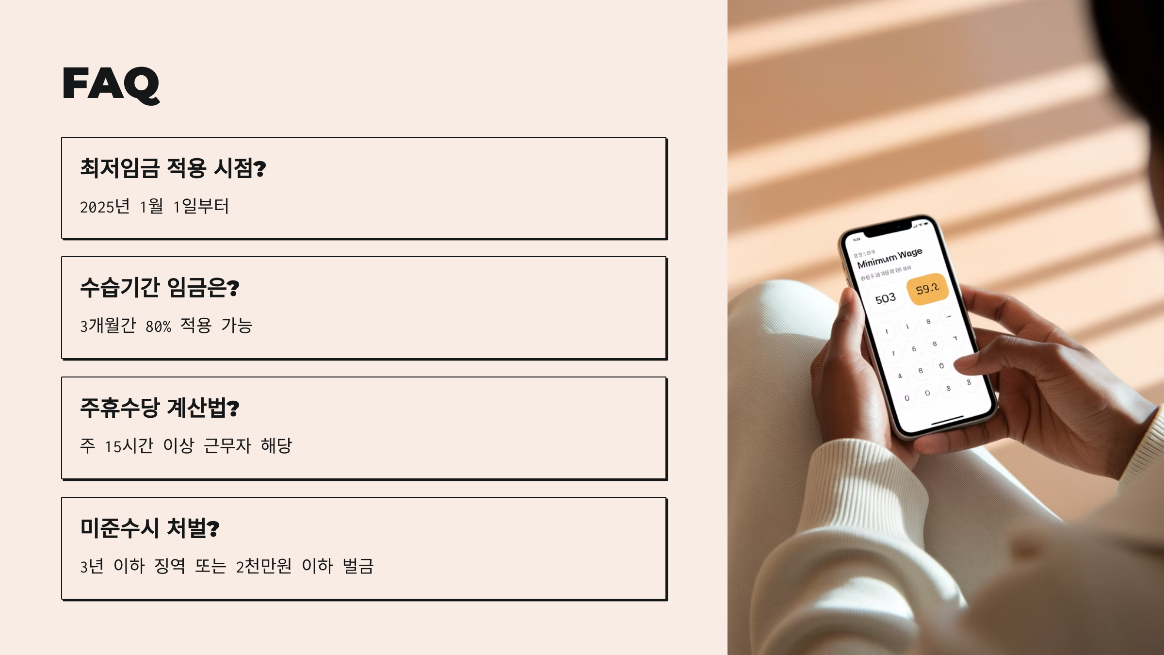 ❓ 이제 2025년 최저임금 인상과 관련된 자주 묻는 질문(FAQ)을 확인해볼까요?