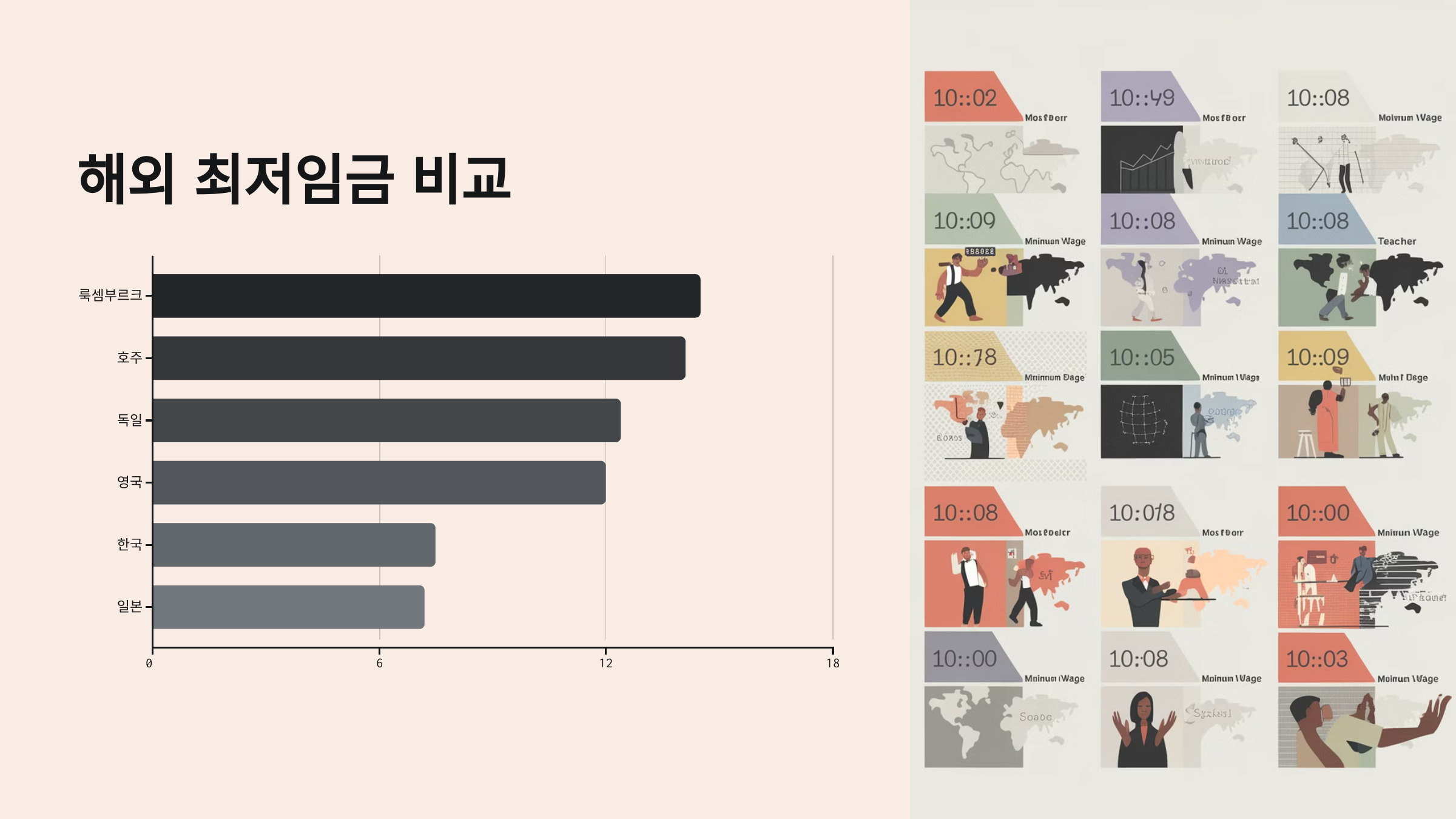 해외와 비교했을 때 한국의 최저임금은 중간 수준이지만, 물가와 생활비를 고려하면 인상 필요성이 제기될 수 있어요. 🌏📈