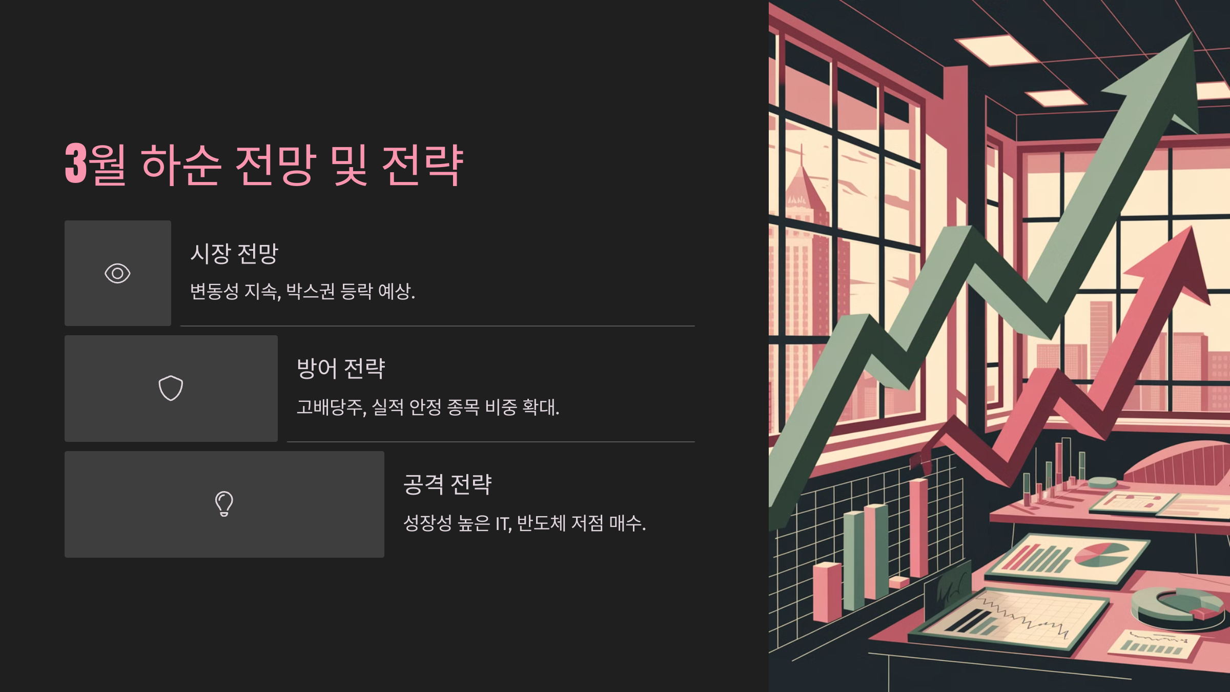 그럼 이제 마지막 핵심! 3월 **하순 이후 시장 전망과 실전 전략**으로 이어가볼게요. 지금 시점에서 우리가 무엇을 준비해야 하는지 깔끔하게 정리해드릴게요! 🚀📅